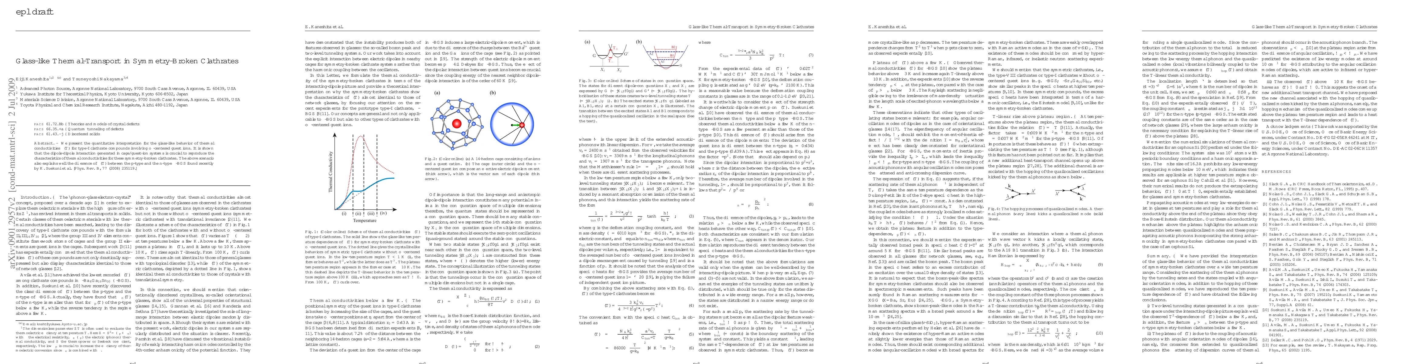 This paper explains the glass-like thermal conductivity behavior in type-I clathrate compounds with off-centered guest ions, attributing it to dipole-dipole interactions in cage/guest-ion systems. It also elucidates the differences in thermal conductivity between $p$-type and $n$-type $\beta$-BGS.