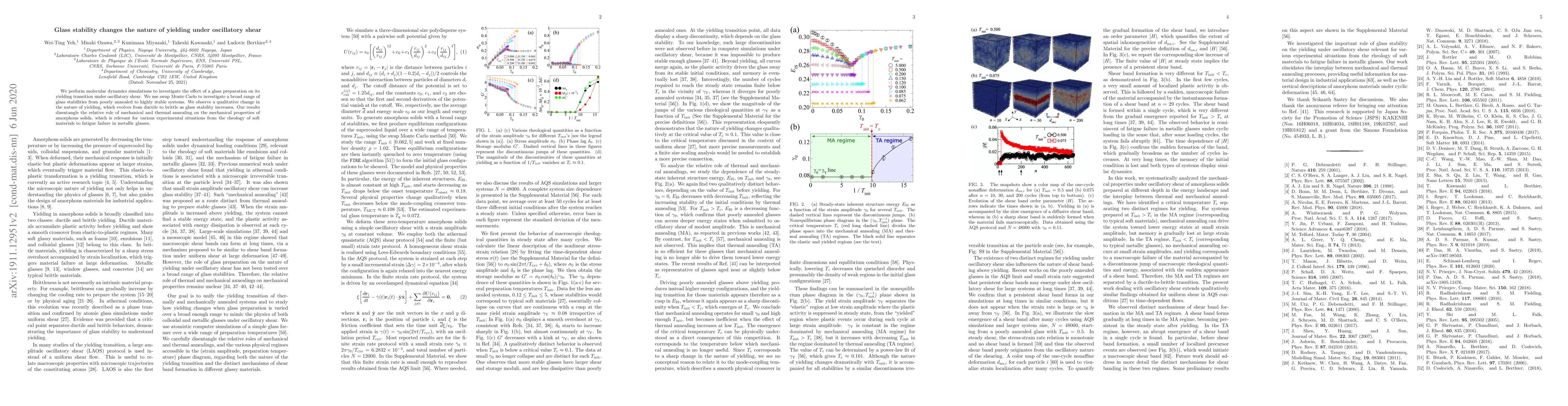We perform molecular dynamics simulations to investigate the effect of a glass preparation on its yielding transition under oscillatory shear. We use swap Monte Carlo to investigate a broad range of glass stabilities from poorly annealed to highly stable systems. We observe a qualitative change in the nature of yielding, which evolves from ductile to brittle as glass stability increases. Our results disentangle the relative role of mechanical and thermal annealing on the mechanical properties of amorphous solids, which is relevant for various experimental situations from the rheology of soft materials to fatigue failure in metallic glasses.