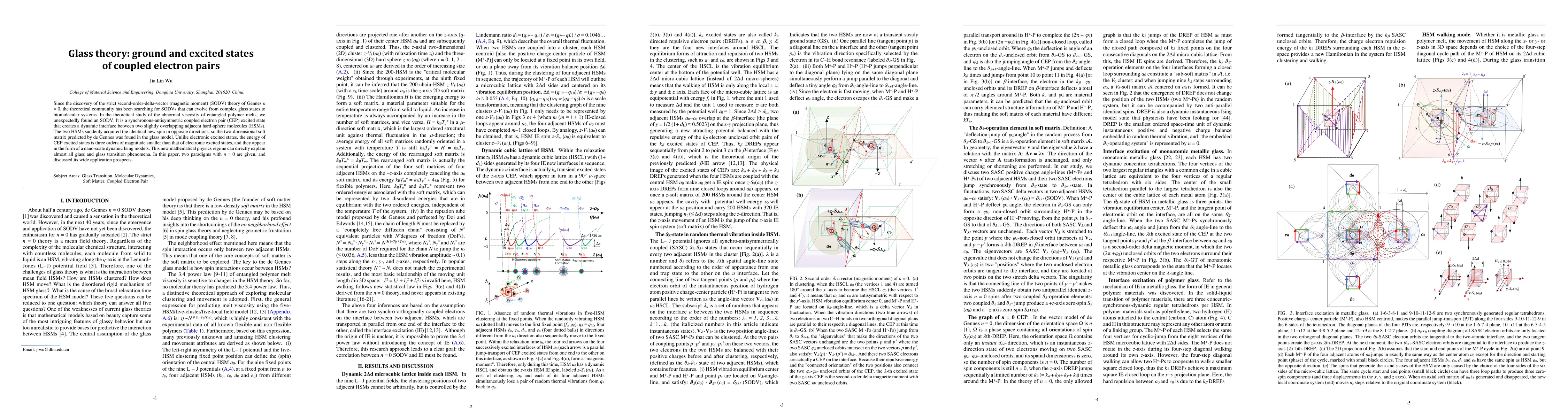 Since the discovery of the strict second-order-delta-vector (magnetic moment) (SODV) theory of Gennes n = 0, the theoretical community has been searching for SODVs that can evolve from complex glass states to biomolecular systems. In the theoretical study of the abnormal viscosity of entangled polymer melts, we unexpectedly found an SODV. It is a synchronous-antisymmetric coupled electron pair (CEP) excited state that creates a dynamic interface between two slightly overlapping adjacent hard-sphere molecules (HSMs). The two HSMs suddenly acquired the identical new spin in opposite directions, so the two-dimensional soft matrix predicted by de Gennes was found in the glass model. Unlike electronic excited states, the energy of CEP excited states is three orders of magnitude smaller than that of electronic excited states, and they appear in the form of a nano-scale dynamic Ising models. This new mathematical physics regime can directly explain almost all glass and glass transition phenomena. In this paper, two paradigms with n = 0 are given, and discussed its wide application prospects.