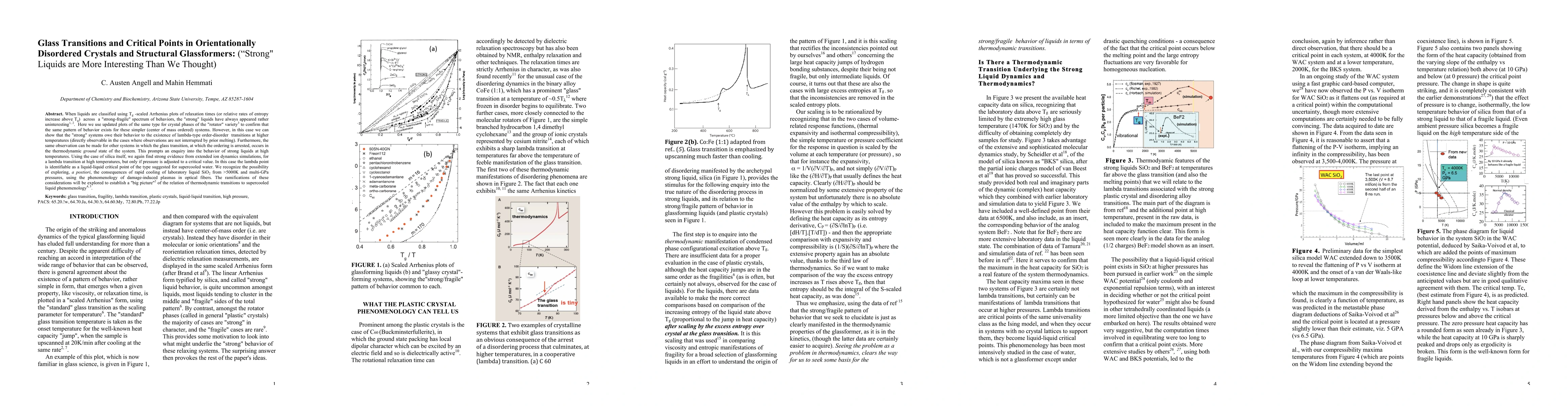 When liquids are classified using Tg -scaled Arrhenius plots of relaxation times (or relative rates of entropy increase above Tg) across a "strong-fragile" spectrum of behaviors, the "strong" liquids have always appeared rather uninteresting [1, 2]. Here we use updated plots of the same type for crystal phases of the "rotator" variety [3] to confirm that the same pattern of behavior exists for these simpler (center of mass ordered) systems. However, in this case we can show that the "strong" systems owe their behavior to the existence of lambda-type order-disorder transitions at higher temperatures (directly observable in the cases where observations are not interrupted by prior melting). Furthermore, the same observation can be made for other systems in which the glass transition, at which the ordering is arrested, occurs in the thermodynamic ground state of the system. This prompts an enquiry into the behavior of strong liquids at high temperatures. Using the case of silica itself, we again find strong evidence from extended ion dynamics simulations, for a lambda transition at high temperatures, but only if pressure is adjusted to a critical value. In this case the lambda point is identifiable as a liquid-liquid critical point of the type suggested for supercooled water. We recognize the possibility of exploring, a postiori, the consequences of rapid cooling of laboratory liquid SiO2 from >5000K and multi-GPa pressures, using the phenomenology of damage-induced plasmas in optical fibers. The ramifications of these considerations will be explored to establish a "big picture"2 of the relation of thermodynamic transitions to supercooled liquid phenomenology [4, 5].