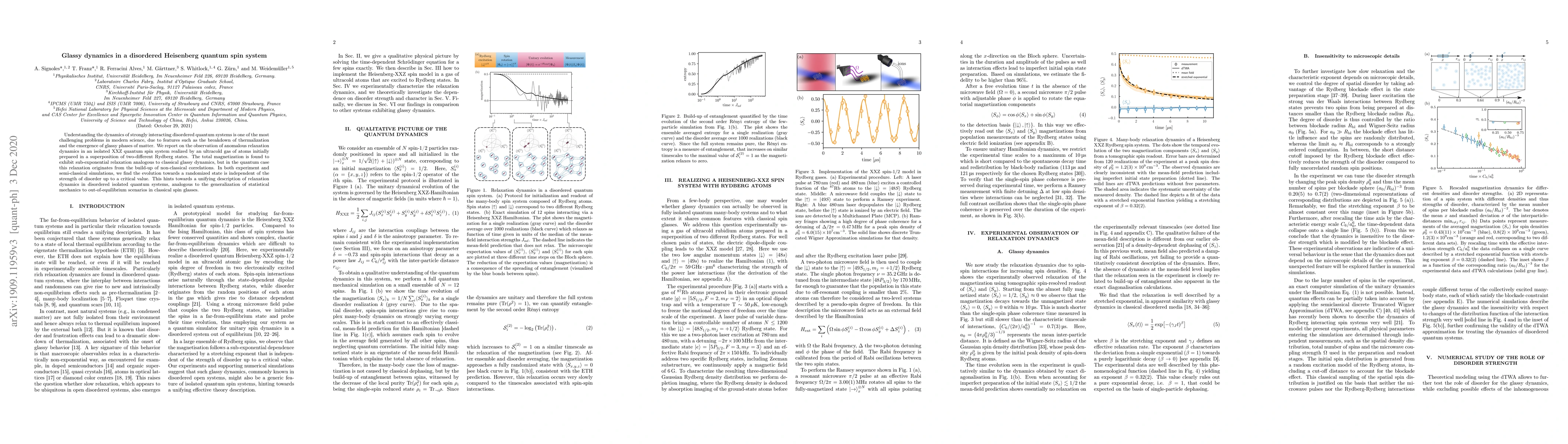 This paper reports on the observation of anomalous relaxation dynamics in a disordered Heisenberg quantum spin system using ultracold atoms, showing sub-exponential relaxation akin to classical glassy dynamics but rooted in quantum correlations. The study suggests a unifying description of relaxation in disordered quantum systems, paralleling classical spin glasses.
