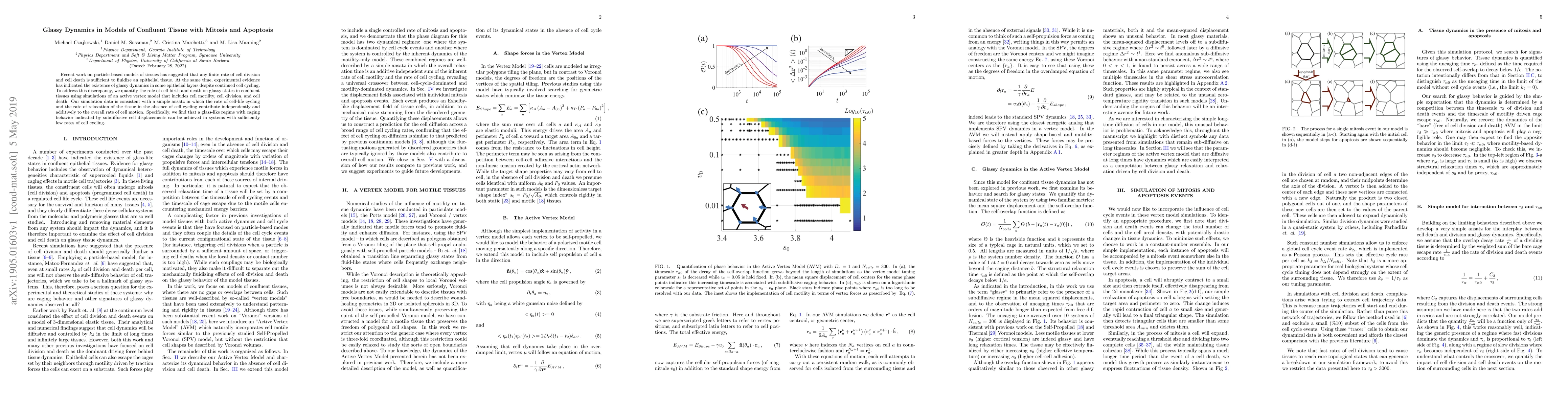 The study investigates how cell division and death influence the dynamics of confluent tissue, revealing that low rates of cell cycling can lead to glassy dynamics, characterized by subdiffusive cell displacements, despite ongoing cell cycling. The findings support an ansatz where cell-life cycling and tissue relaxation rates additively determine the overall cell motion rate.