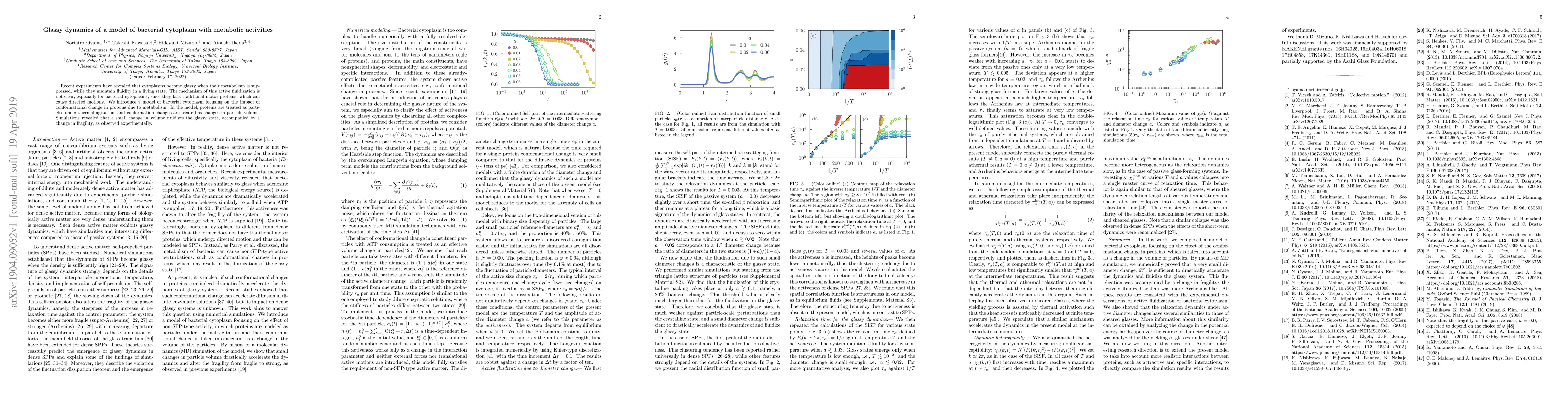 This paper models bacterial cytoplasm dynamics, revealing that metabolic activity induces conformational changes in proteins, leading to a transition from a glassy to a fluid state. Simulations show that even minor volume changes in proteins can significantly alter the cytoplasm's fluidity and fragility, mirroring experimental observations.