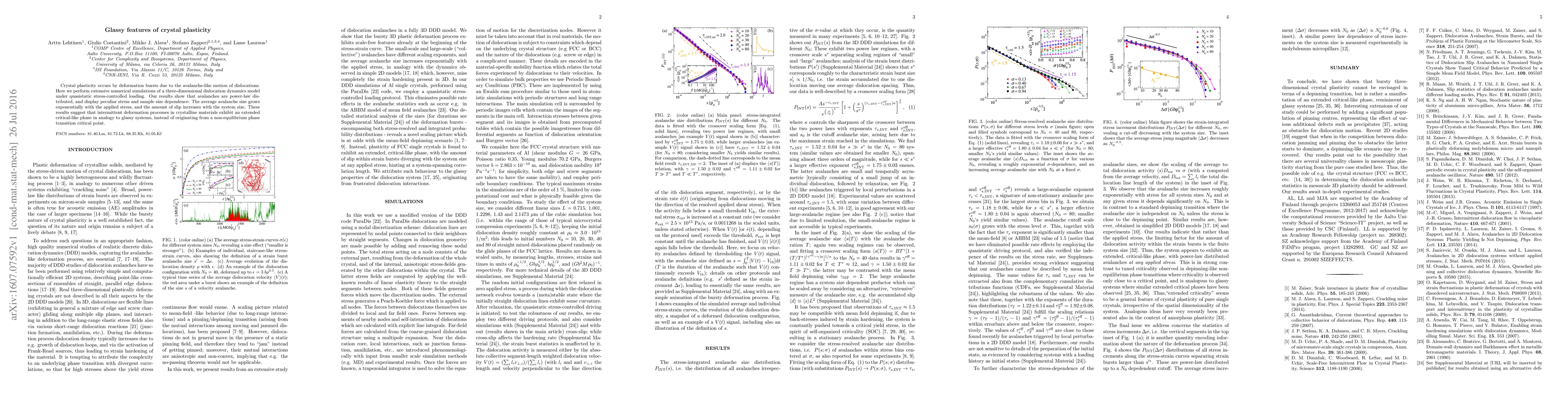 This paper investigates the deformation bursts in crystal plasticity through dislocation dynamics simulations, revealing that avalanches follow power-law distributions and exhibit exponential growth with stress and size dependence, suggesting a glassy-like critical phase rather than a non-equilibrium phase transition.