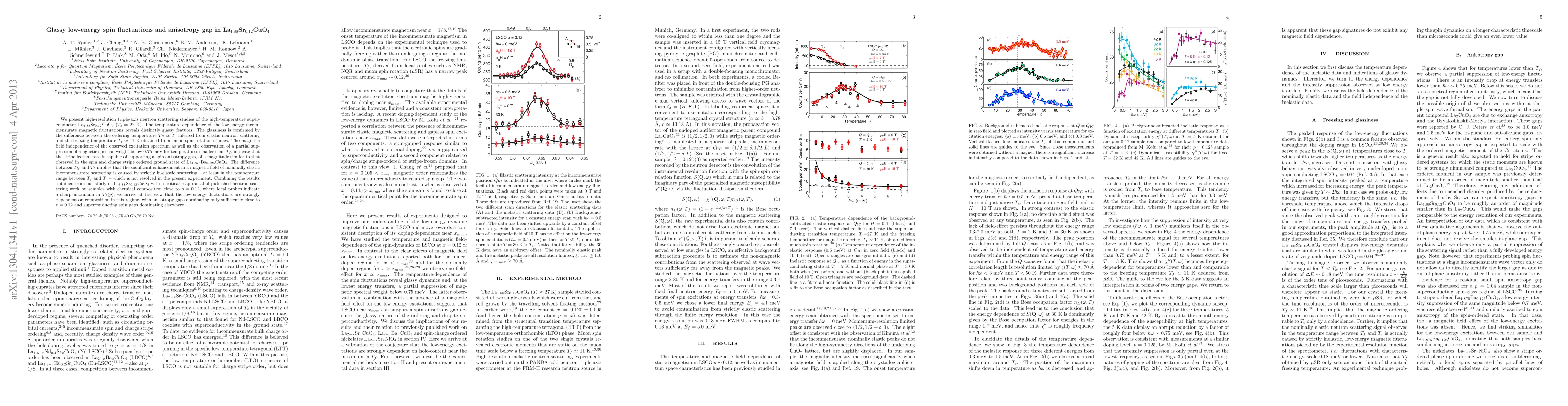 Researchers studied high-temperature superconductor La1.88Sr0.12CuO4 using neutron scattering, finding glassy spin fluctuations with a spin anisotropy gap similar to that in other related compounds.