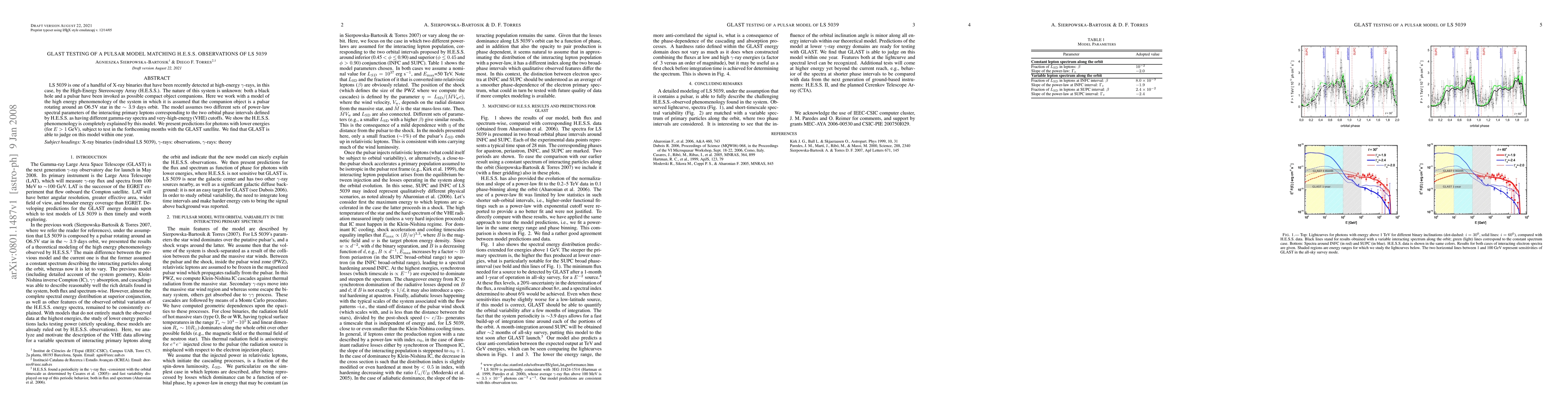 Researchers tested a pulsar model against H.E.S.S. observations of LS 5039, confirming it explains the high-energy gamma-ray spectra and VHE cutoffs. Predictions for GLAST satellite data are provided to test the model within a year.