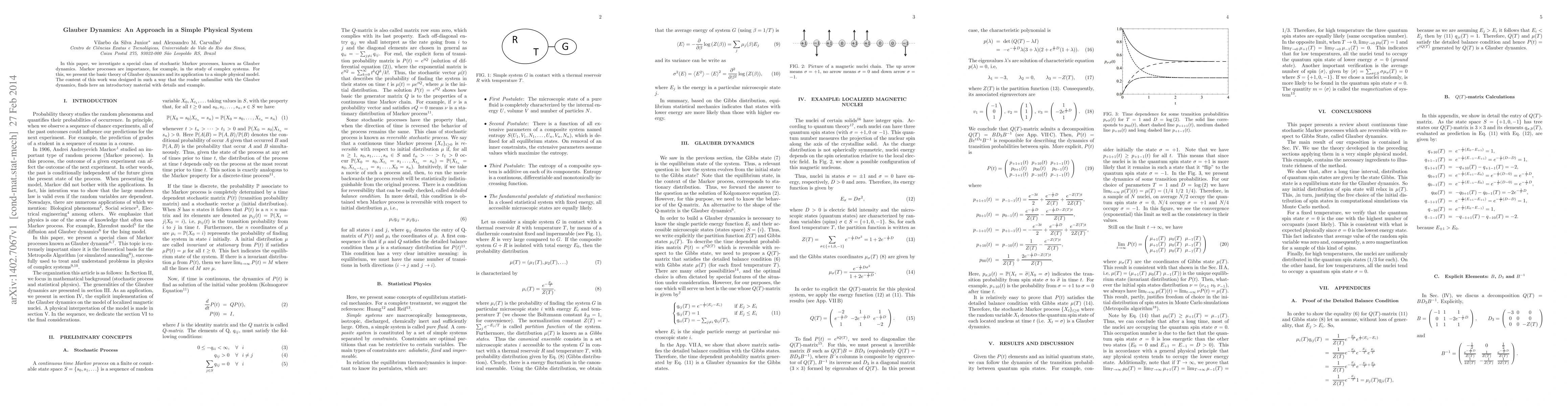 In this paper, we investigate a special class of stochastic Markov processes, known as Glauber dynamics. Markov processes are importance, for example, in the study of complex systems. For this, we present the basic theory of Glauber dynamics and its application to a simple physical model. The content of this work was designed in such a way that the reader unfamiliar with the Glauber dynamics, finds here an introductory material with details and example.