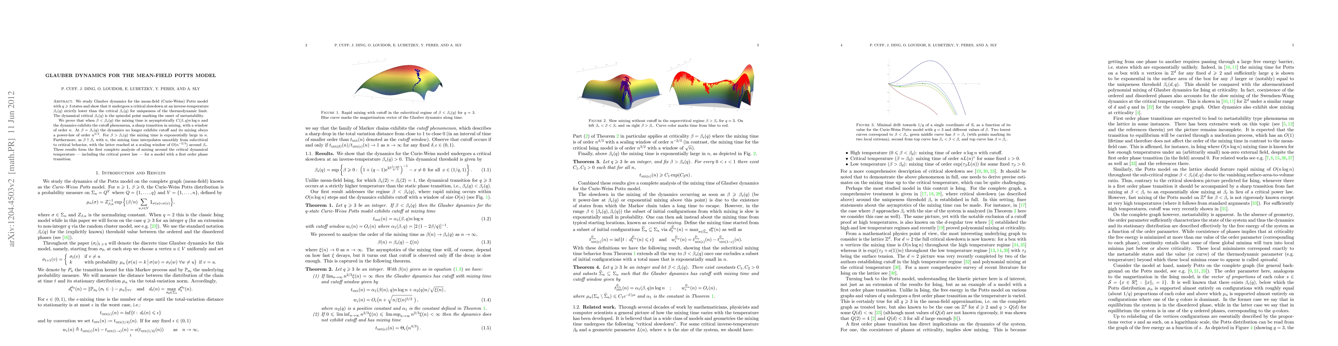 This paper investigates the Glauber dynamics for the mean-field Potts model, revealing a critical slowdown at a lower inverse-temperature $\beta_s(q)$ compared to the critical temperature $\beta_c(q)$. It demonstrates distinct mixing behaviors depending on the temperature, including cutoff phenomena and power-law mixing near the spinodal point.