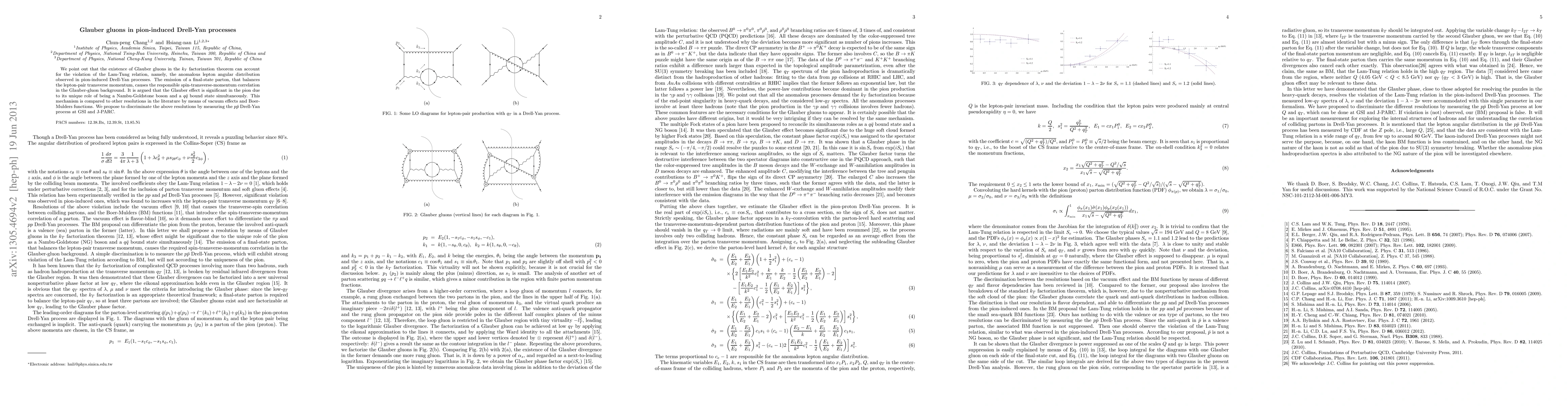 We point out that the existence of Glauber gluons in the $k_T$ factorization theorem can account for the violation of the Lam-Tung relation, namely, the anomalous lepton angular distribution, observed in pion-induced Drell-Yan processes. Radiations, that balance the lepton-pair transverse momentum, cause the responsible spin-transverse-momentum correlation in the Glauber-gluon background. It is argued that the Glauber effect is significant in the pion due to its unique role of being a Nambu-Goldstone boson and a $q\bar q$ bound state simultaneously. This mechanism is compared to other resolutions in the literature by means of vacuum effects and Boer-Mulders functions. We propose to discriminate the above resolutions by measuring the $p\bar p$ Drell-Yan process at GSI and J-PARC.