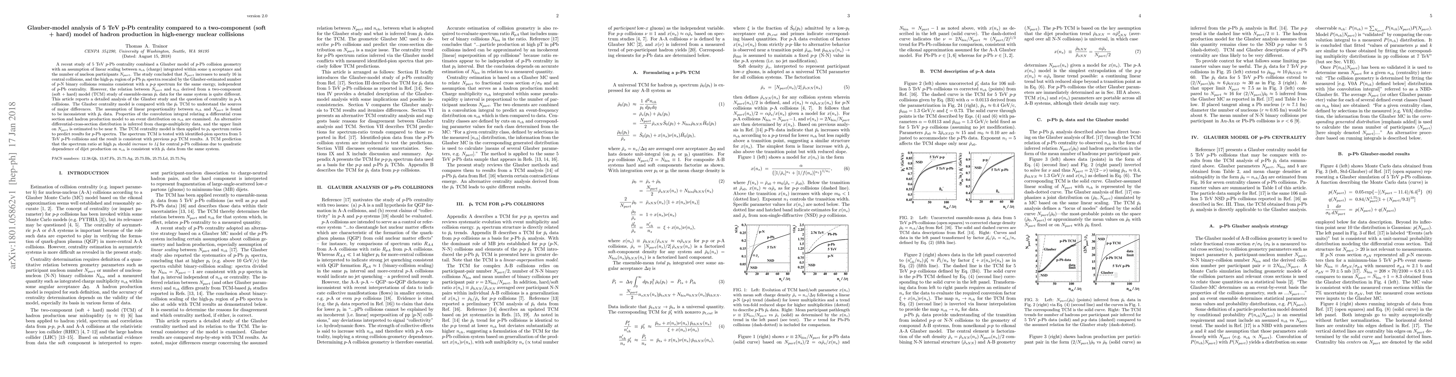 This paper analyzes 5 TeV $p$-Pb collisions using a Glauber model and compares it to a two-component model (TCM) of hadron production, finding discrepancies in $N_{part}$ estimates. The Glauber model's linear scaling assumption between $n_{ch}$ and $N_{part}$ is inconsistent with $\bar p_t$ data, leading to a revised upper limit of $N_{part}$ near 8.