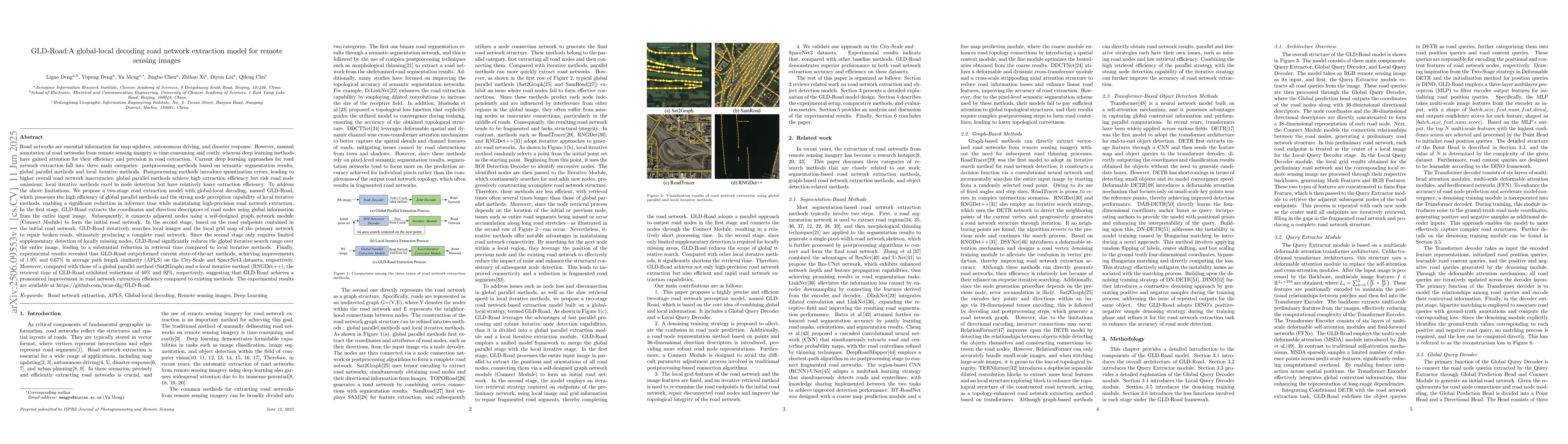 A new deep learning model called GLD-Road is proposed to efficiently extract road networks from remote sensing images, outperforming existing methods with improved accuracy and speed.
