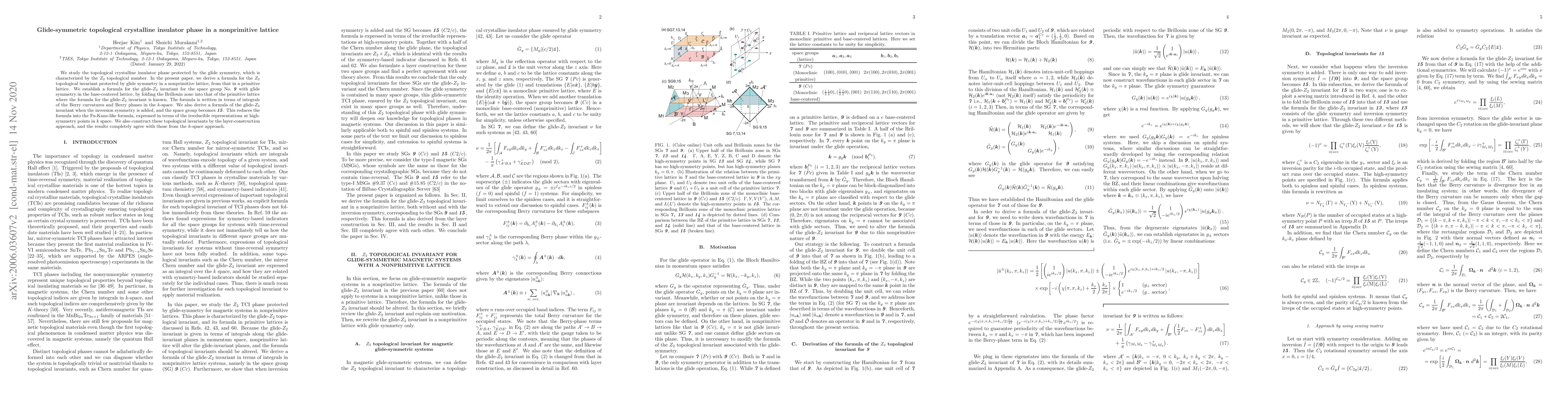 This paper derives a formula for the glide-Z2 topological invariant in nonprimitive lattices, extending the known formula from primitive lattices. It establishes the invariant for space group No. 9 and derives a reduced formula for space group No. 15 when inversion symmetry is present, confirming the results through both k-space and layer-construction approaches.