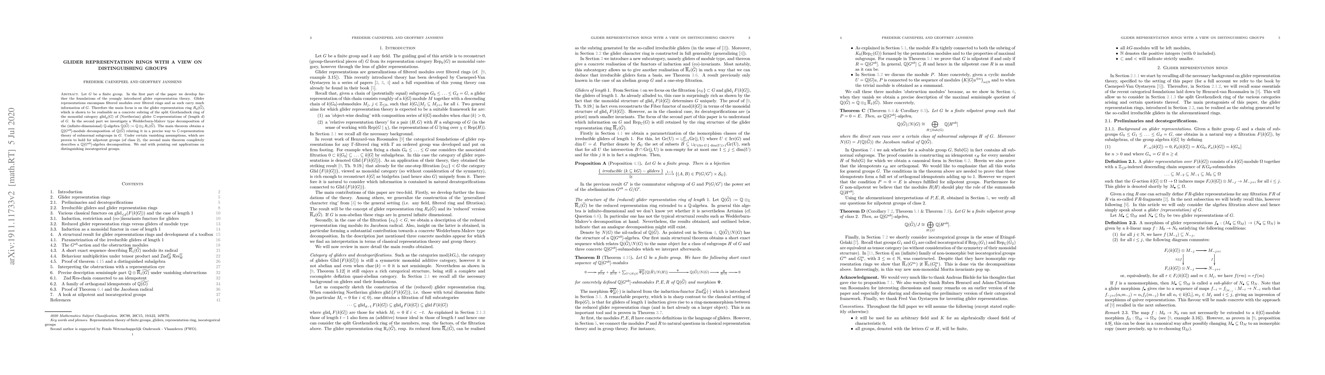 The paper develops glider representation theory to understand finite groups, focusing on the glider representation ring and its realization in the split Grothendieck ring. It also explores a Wedderburn-Malcev type decomposition of an infinite-dimensional $\mathbb{Q}$-algebra related to $\mathbb{C}$-representations, leading to applications in distinguishing isocategorical groups.