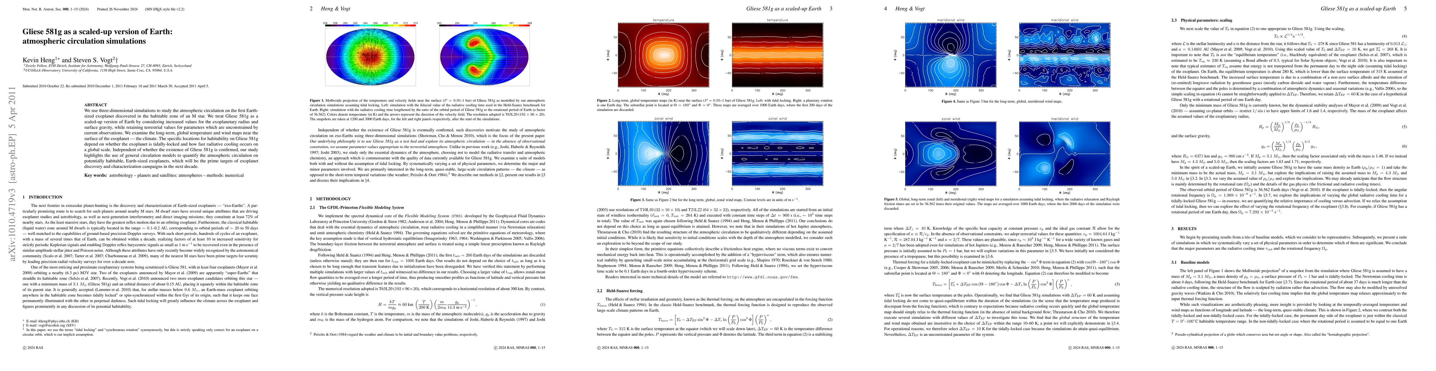 The research employs three-dimensional atmospheric circulation simulations using Gliese 581g, an exoplanet candidate, as a scaled-up version of Earth. The model is based on the Held-Suarez benchmark for Earth, calibrated to reproduce large-scale terrestrial climate patterns.