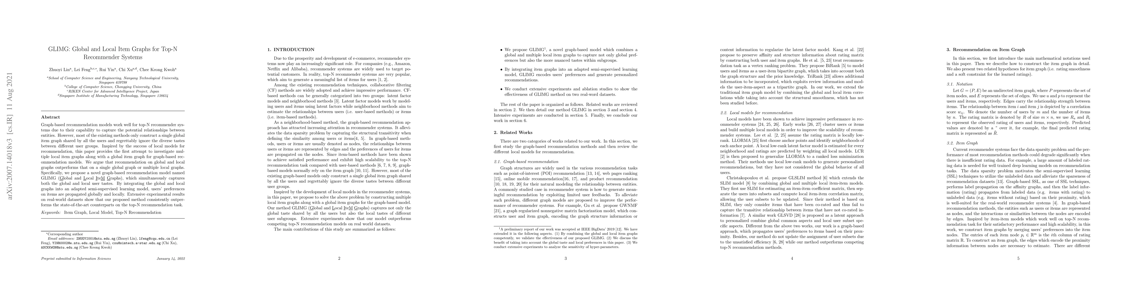 This paper introduces GLIMG, a novel graph-based recommendation model that combines global and local item graphs to capture diverse user tastes. The proposed method outperforms existing models by integrating both global and local graph information through an adapted semi-supervised learning approach, achieving superior performance on top-N recommendation tasks.