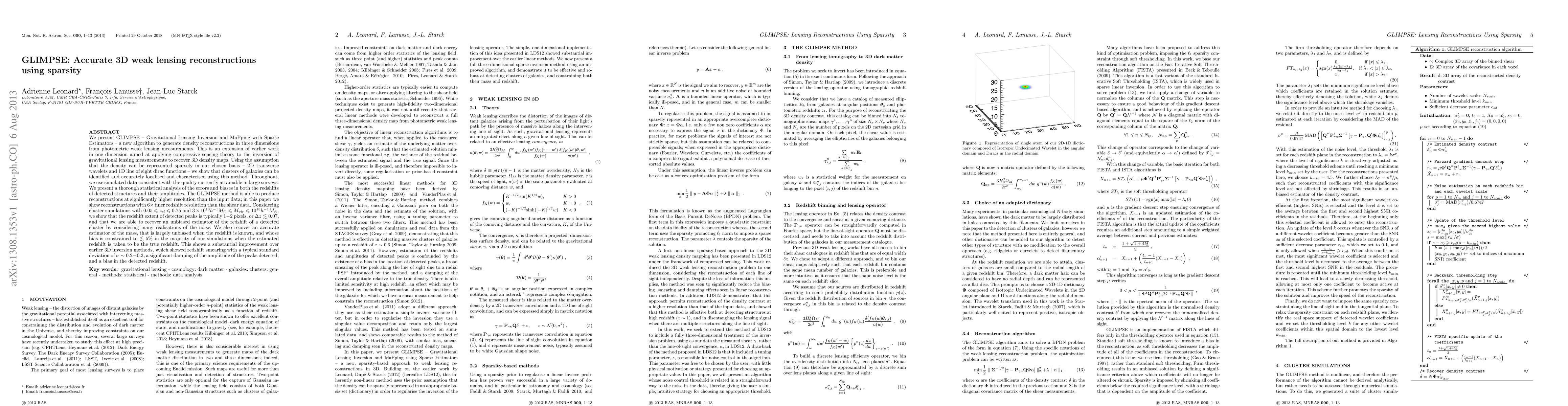 GLIMPSE is a new algorithm for reconstructing 3D density maps from weak lensing measurements, leveraging sparse representation and compressive sensing. It significantly improves the resolution and accuracy of cluster identification and characterization compared to previous methods.