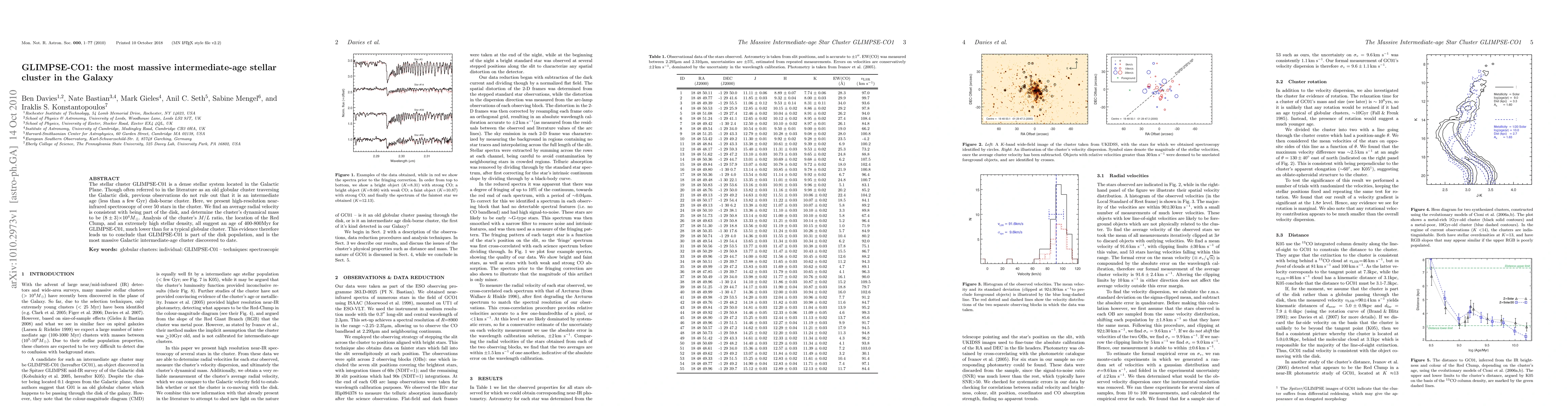 The GLIMPSE-CO1 cluster is an intermediate-age stellar system in the Milky Way's disk with a mass of (8 Ð 3)x10^4 Msun, challenging traditional views of globular clusters.
