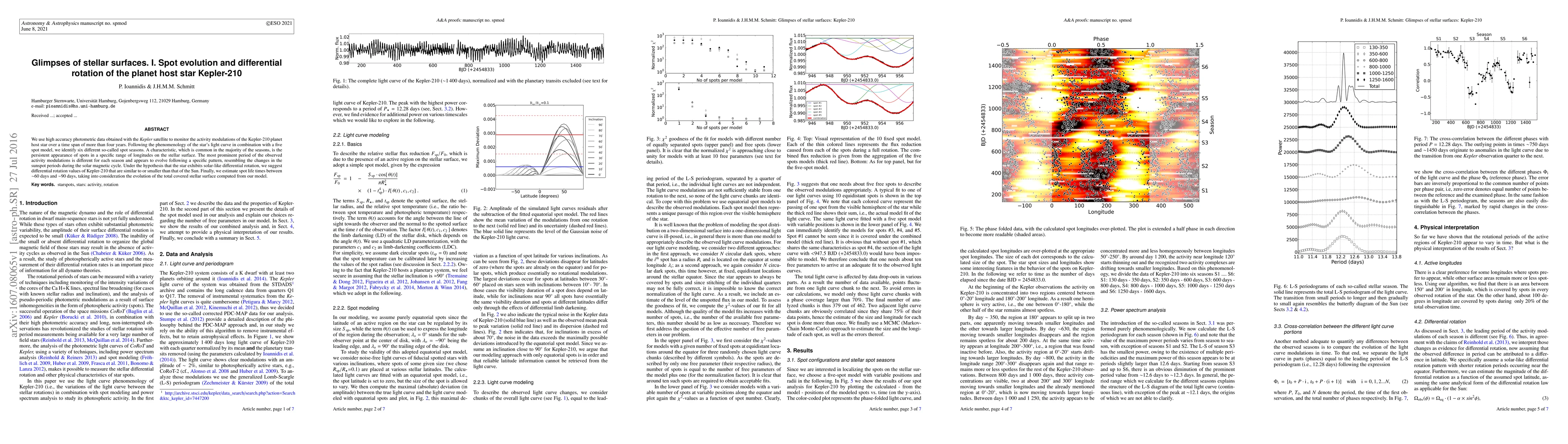 Researchers analyzed Kepler-210 star's activity patterns over 4 years, identifying 6 spot seasons with persistent spots in specific longitudes, suggesting the star exhibits solar-like differential rotation.