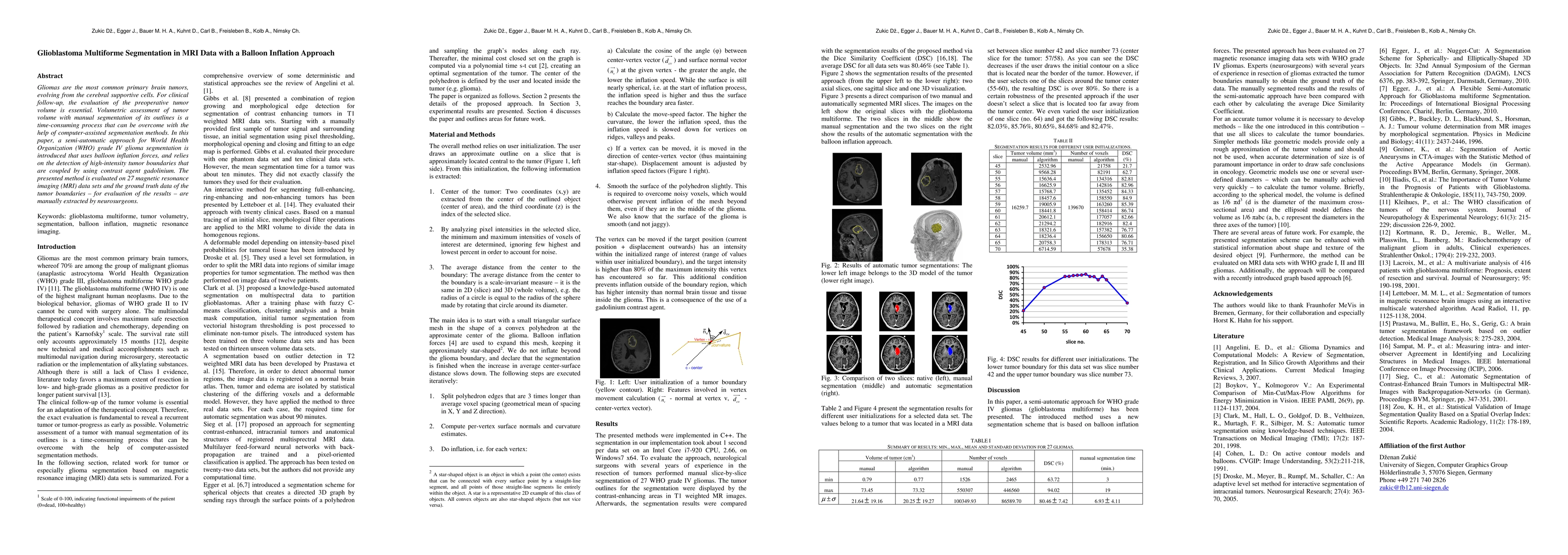 Gliomas are the most common primary brain tumors, evolving from the cerebral supportive cells. For clinical follow-up, the evaluation of the preoperative tumor volume is essential. Volumetric assessment of tumor volume with manual segmentation of its outlines is a time-consuming process that can be overcome with the help of computer-assisted segmentation methods. In this paper, a semi-automatic approach for World Health Organization (WHO) grade IV glioma segmentation is introduced that uses balloon inflation forces, and relies on the detection of high-intensity tumor boundaries that are coupled by using contrast agent gadolinium. The presented method is evaluated on 27 magnetic resonance imaging (MRI) data sets and the ground truth data of the tumor boundaries - for evaluation of the results - are manually extracted by neurosurgeons.