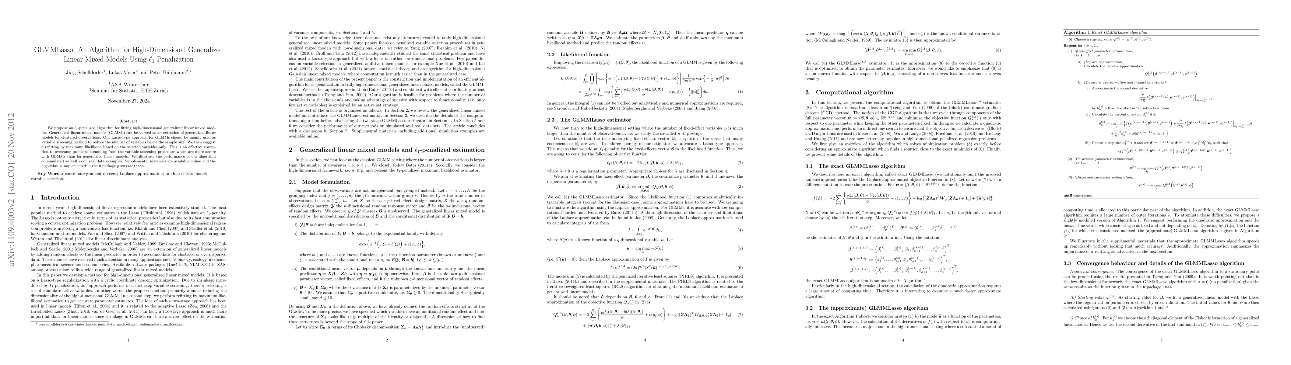 The paper introduces GLMMLasso, an L1-penalized algorithm for fitting high-dimensional generalized linear mixed models, primarily for variable screening to reduce dimensionality. It proposes a subsequent refitting by maximum likelihood to correct issues from the initial screening process, and demonstrates its effectiveness on simulated and real data.