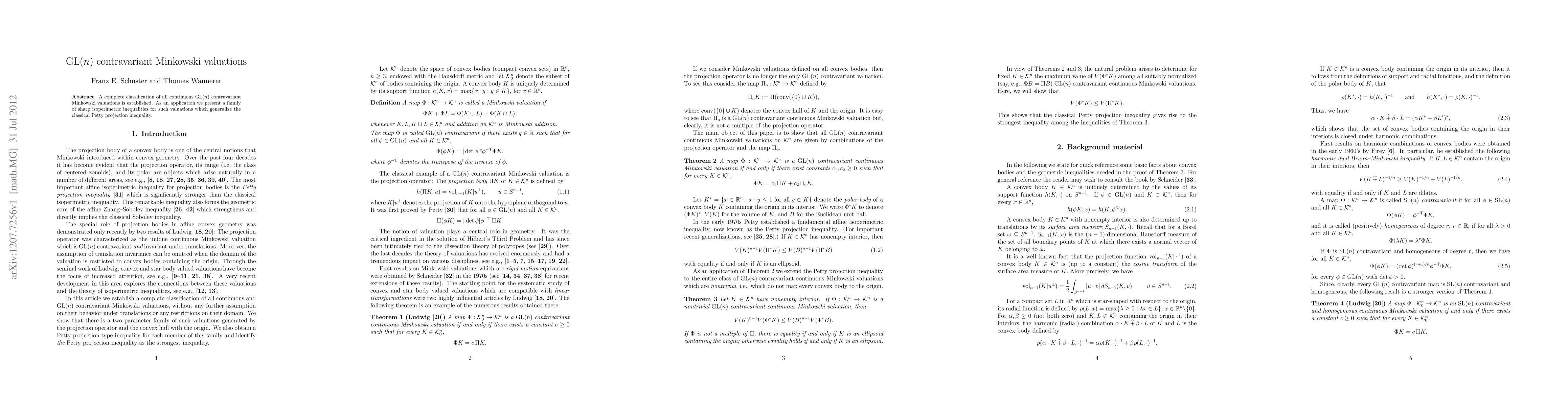 This paper classifies continuous GL(n) contravariant Minkowski valuations and derives a family of sharp isoperimetric inequalities, extending the classical Petty projection inequality.