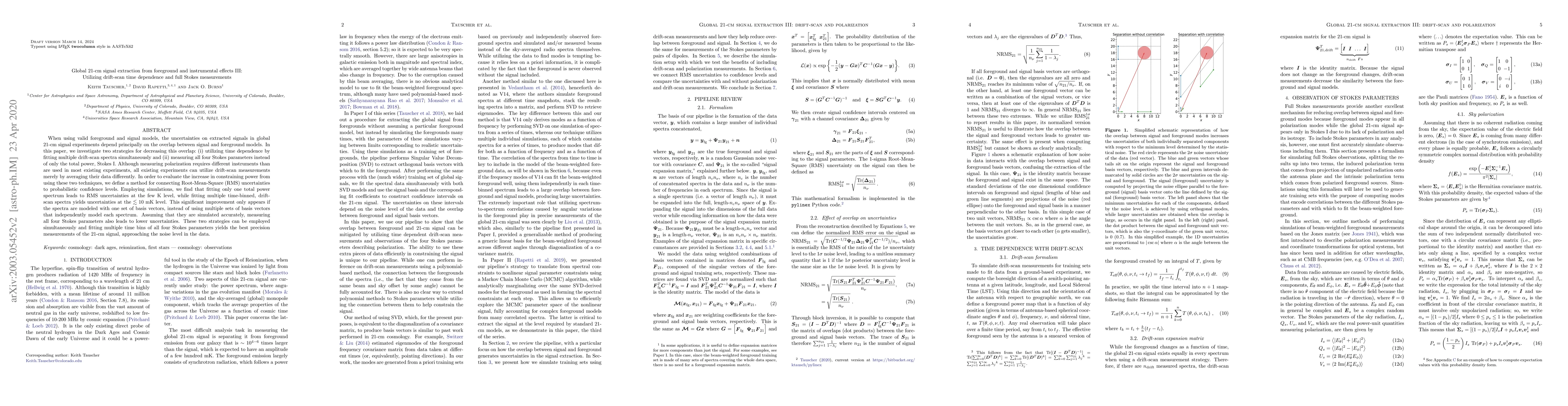 When using valid foreground and signal models, the uncertainties on extracted signals in global 21-cm signal experiments depend principally on the overlap between signal and foreground models. In this paper, we investigate two strategies for decreasing this overlap: (i) utilizing time dependence by fitting multiple drift-scan spectra simultaneously and (ii) measuring all four Stokes parameters instead of only the total power, Stokes I. Although measuring polarization requires different instruments than are used in most existing experiments, all existing experiments can utilize drift-scan measurements merely by averaging their data differently. In order to evaluate the increase in constraining power from using these two techniques, we define a method for connecting Root-Mean-Square (RMS) uncertainties to probabilistic confidence levels. Employing simulations, we find that fitting only one total power spectrum leads to RMS uncertainties at the few K level, while fitting multiple time-binned, drift-scan spectra yields uncertainties at the $\lesssim 10$ mK level. This significant improvement only appears if the spectra are modeled with one set of basis vectors, instead of using multiple sets of basis vectors that independently model each spectrum. Assuming that they are simulated accurately, measuring all four Stokes parameters also leads to lower uncertainties. These two strategies can be employed simultaneously and fitting multiple time bins of all four Stokes parameters yields the best precision measurements of the 21-cm signal, approaching the noise level in the data.