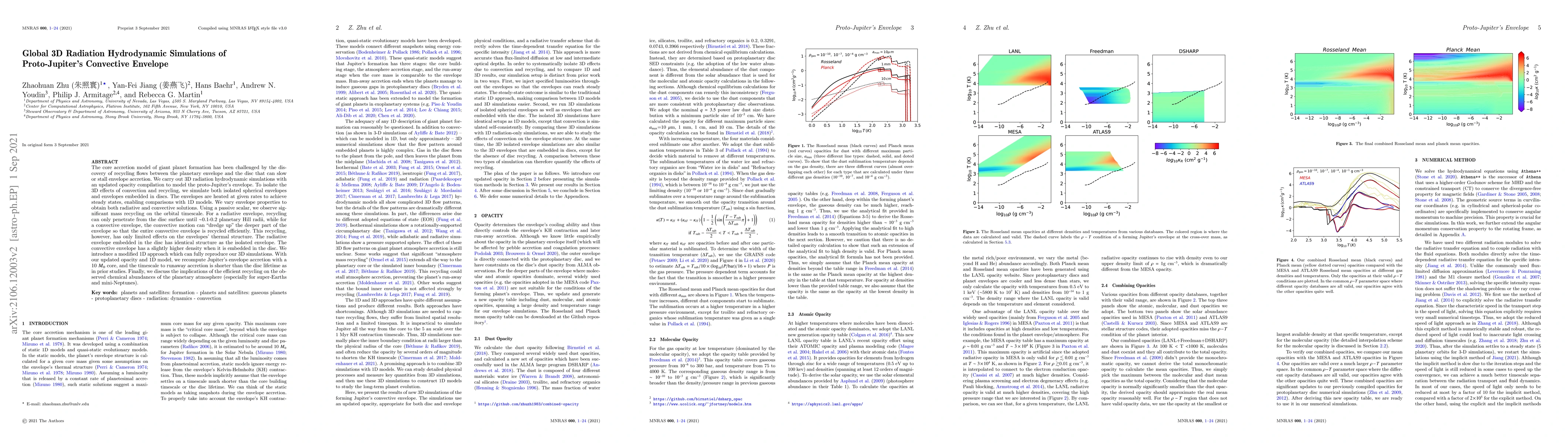 This paper presents 3D radiation hydrodynamic simulations of proto-Jupiter's convective envelope, revealing significant mass recycling and contrasting radiative and convective envelopes' thermal structures. The study introduces a modified 1D approach that accurately reproduces the 3D results, showing efficient recycling in convective envelopes but limited impact on thermal structure.