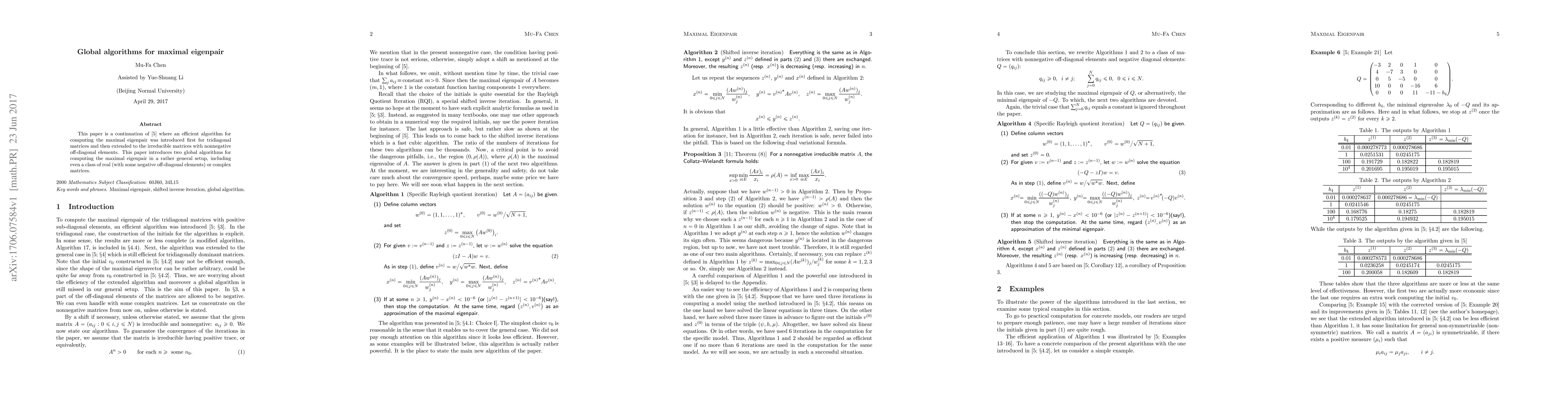 Two global algorithms for computing maximal eigenpairs in various types of matrices have been introduced, expanding on previous work to include more general cases.