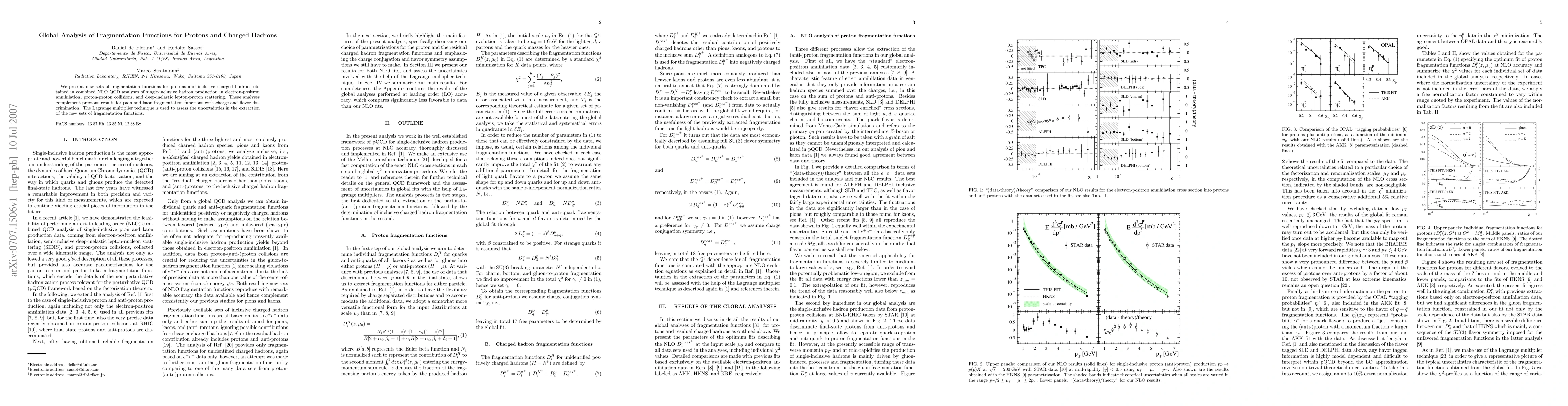 The paper presents new fragmentation functions for protons and inclusive charged hadrons at NLO accuracy, incorporating data from multiple sources and using the Lagrange multiplier technique to assess uncertainties.