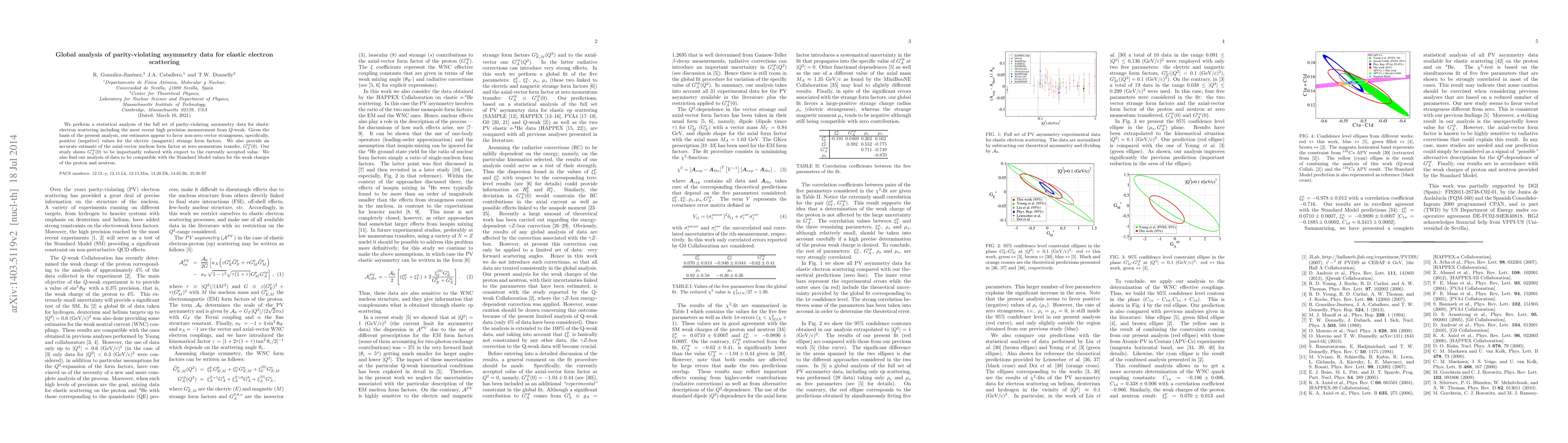 We perform a statistical analysis of the full set of parity-violating asymmetry data for elastic electron scattering including the most recent high precision measurement from $Q$-weak. Given the basis of the present analysis, our estimates appear to favor non-zero vector strangeness, specifically, positive (negative) values for the electric (magnetic) strange form factors. We also provide an accurate estimate of the axial-vector nucleon form factor at zero momentum transfer, $G_A^{ep}(0)$. Our study shows $G_A^{ep}(0)$ to be importantly reduced with respect to the currently accepted value. We also find our analysis of data to be compatible with the Standard Model values for the weak charges of the proton and neutron.