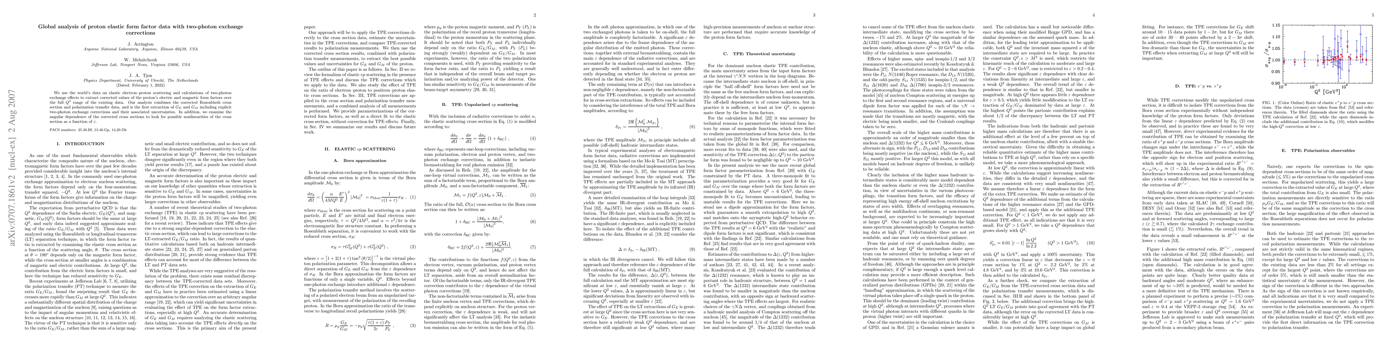 We use the world's data on elastic electron--proton scattering and calculations of two-photon exchange effects to extract corrected values of the proton's electric and magnetic form factors over the full Q^2 range of the existing data. Our analysis combines the corrected Rosenbluth cross section and polarization transfer data, and is the first extraction of G_Ep and G_Mp including explicit two-photon exchange corrections and their associated uncertainties. In addition, we examine the angular dependence of the corrected cross sections, and discuss the possible nonlinearities of the cross section as a function of epsilon.