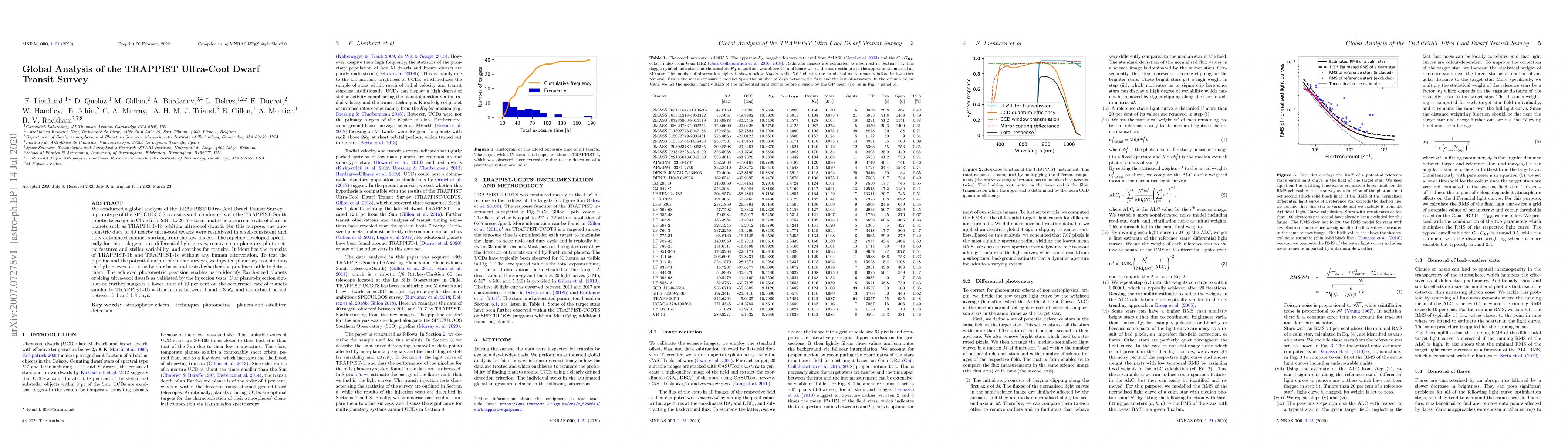 This paper presents a global analysis of the TRAPPIST Ultra-Cool Dwarf Transit Survey, estimating the occurrence rate of close-in planets around ultra-cool dwarfs. The study uses a self-consistent automated pipeline to analyze photometric data, identifying the transits of TRAPPIST-1b and TRAPPIST-1c, and suggests a lower limit of 10% for the occurrence rate of Earth-sized planets in the specified orbital period.