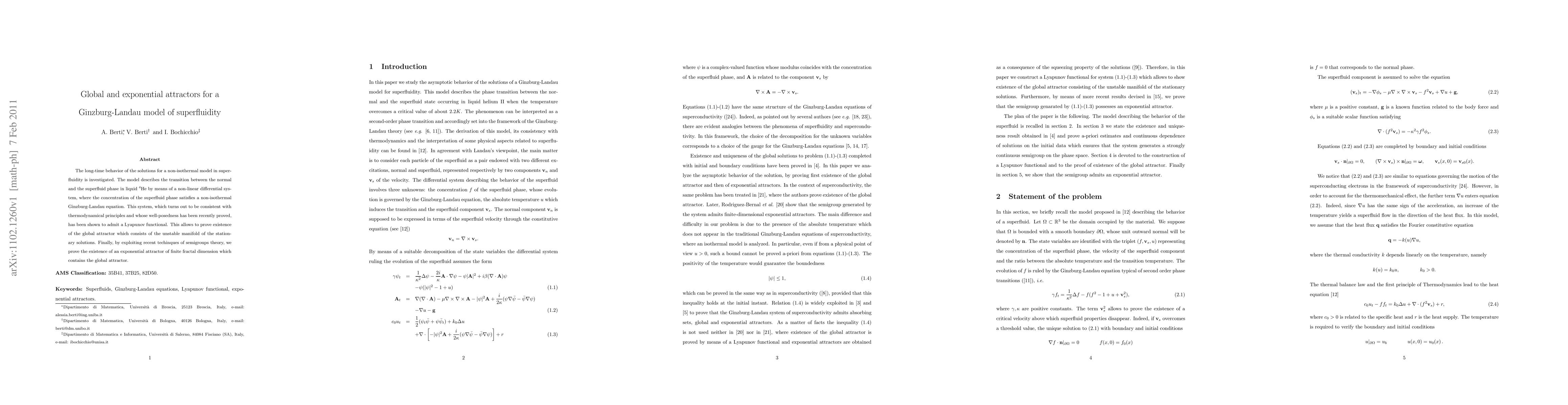 This paper investigates the long-term behavior of a non-isothermal Ginzburg-Landau model for superfluidity in liquid 4He, proving the existence of both a global attractor and an exponential attractor of finite fractal dimension, which ensures stability and convergence of the system's solutions over time.