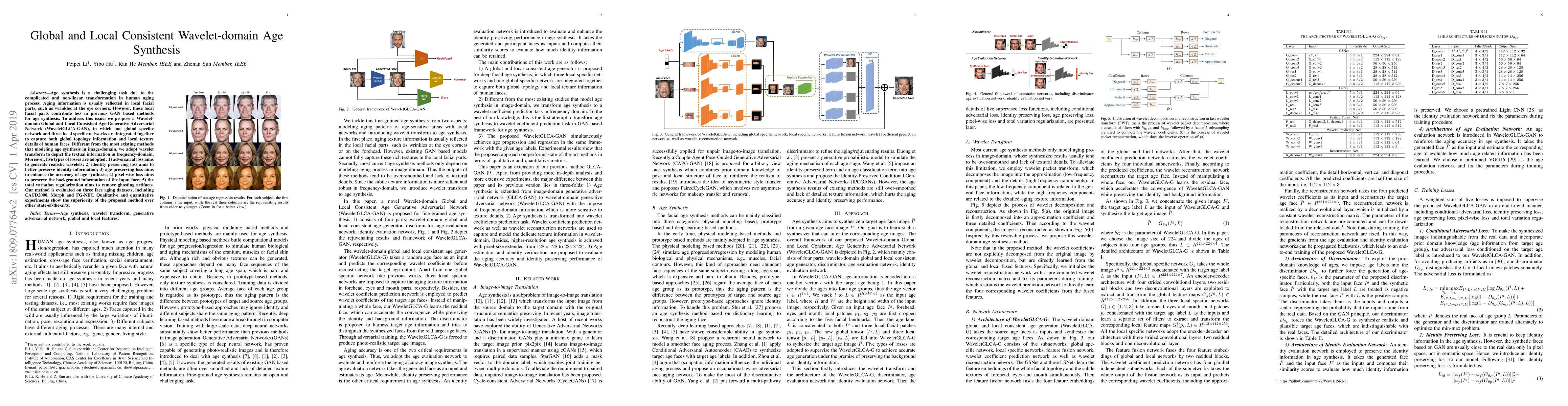 The paper proposes a WaveletGLCA-GAN to synthesize realistic age changes in facial images by integrating global and local networks to capture both global and local facial details. It employs wavelet transform for frequency-domain representation and uses multiple losses to ensure realistic, identity-preserving, and accurate age synthesis, outperforming other methods on multiple datasets.