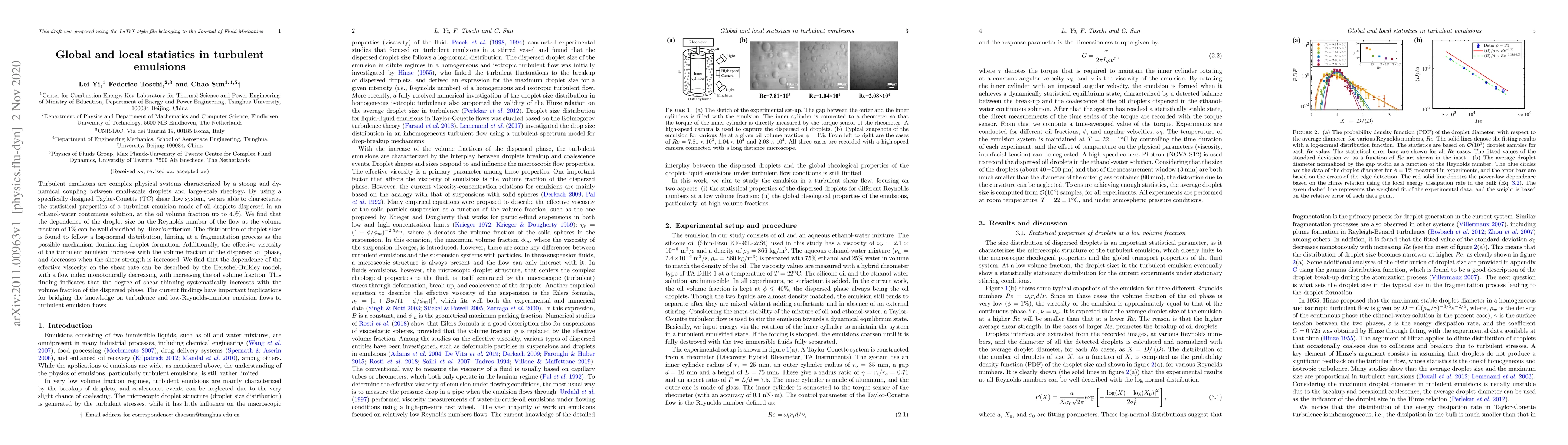 This study investigates turbulent emulsions using a Taylor-Couette shear flow system, revealing that droplet size distribution follows a log-normal pattern and effective viscosity increases with oil volume fraction while decreasing with shear strength, described by the Herschel-Bulkley model. These insights bridge turbulence knowledge with emulsion flow dynamics.