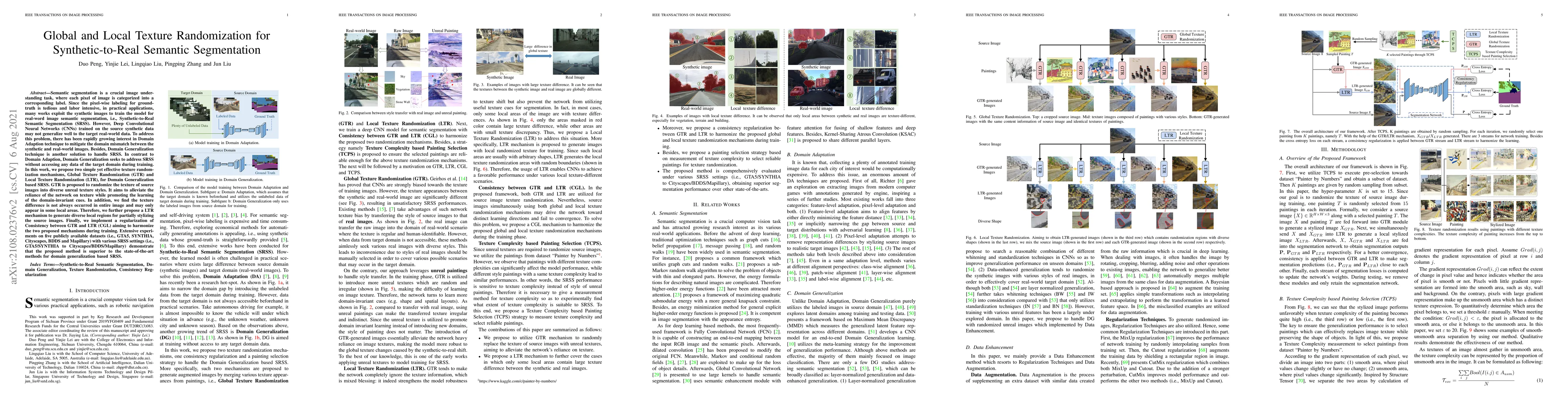 The paper proposes Global Texture Randomization (GTR) and Local Texture Randomization (LTR) mechanisms for Domain Generalization in Synthetic-to-Real Semantic Segmentation (SRSS). GTR randomizes the texture of source images into diverse unreal styles, while LTR generates diverse local regions for partially stylizing the source images. Consistency Regularization (CGL) is implemented to harmonize GTR and LTR during training.