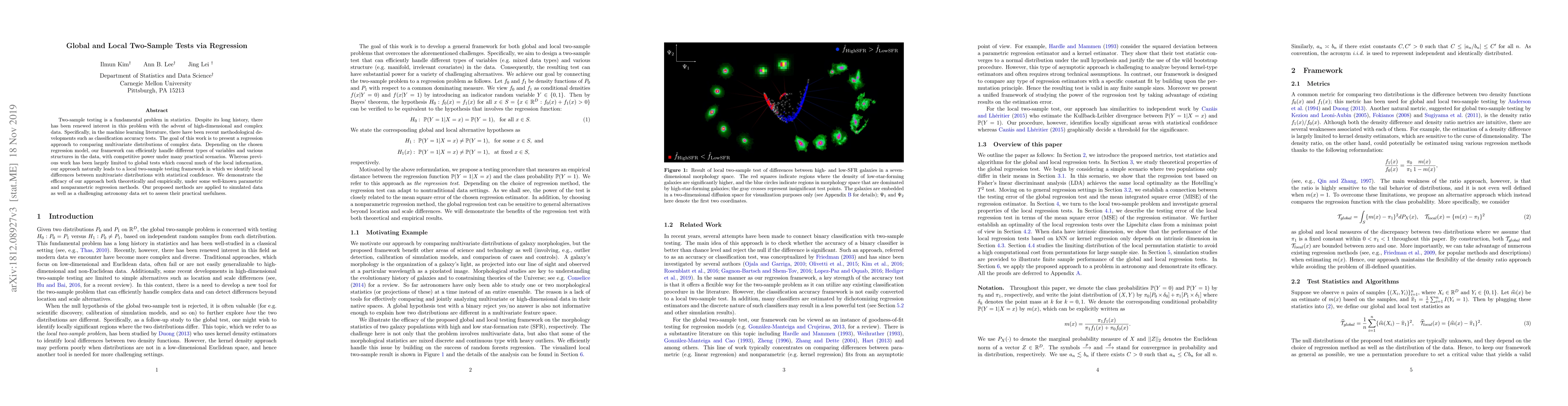 A new approach to two-sample testing is presented, using regression methods to efficiently handle complex data and identify local differences between multivariate distributions with statistical confidence. The method is demonstrated empirically on simulated data and a challenging astronomy dataset, showcasing its practical usefulness.