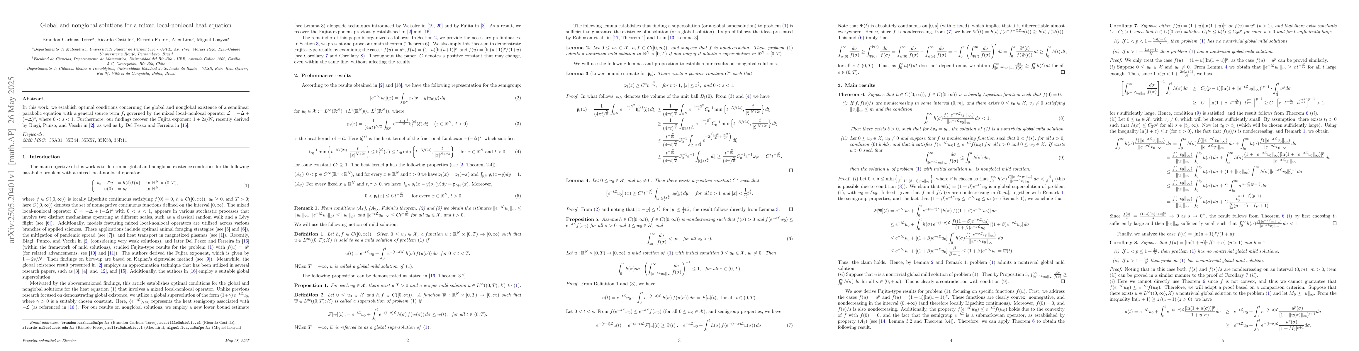The paper presents a detailed analysis of existence conditions for solutions of a mixed local-nonlocal heat equation, providing a comprehensive framework for understanding solution behavior.