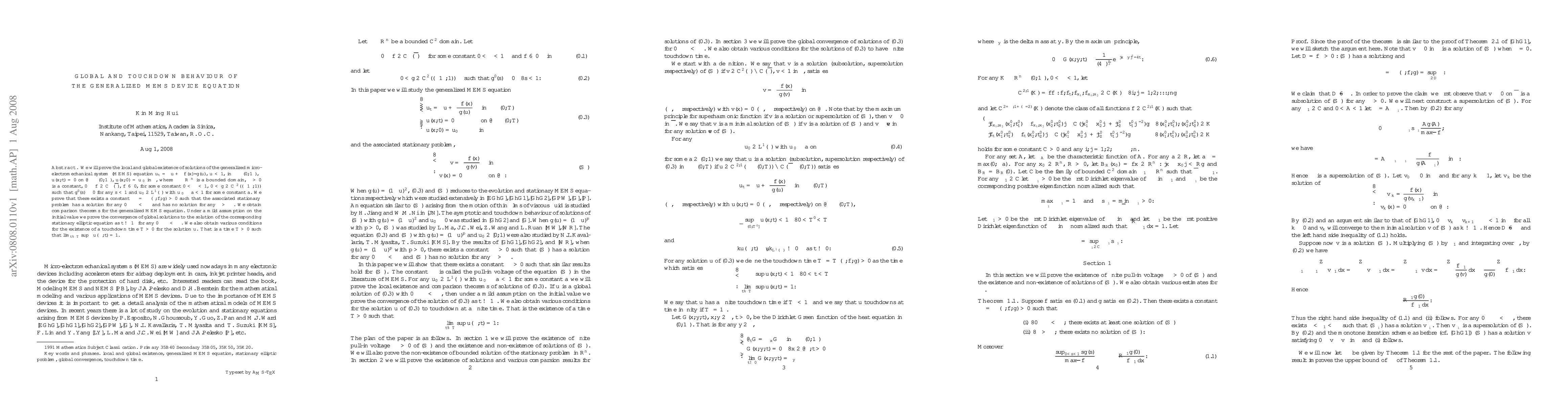 The paper proves the existence of solutions for a generalized MEMS device equation under certain conditions, showing global and local existence, convergence to stationary solutions, and conditions for a touchdown time.