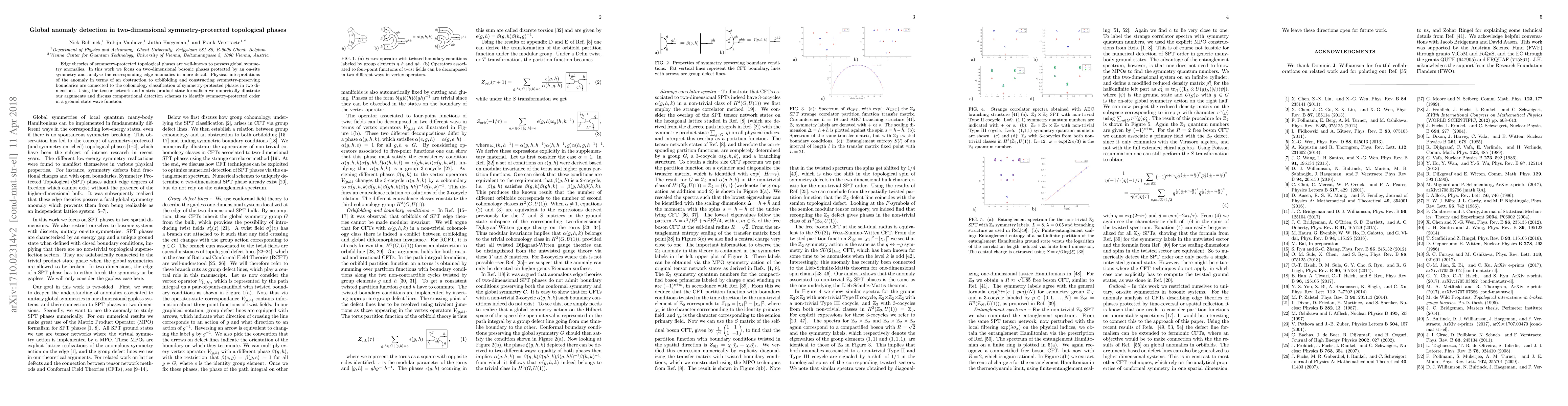 This paper investigates global symmetry anomalies in two-dimensional bosonic phases protected by an on-site symmetry, connecting these anomalies to cohomology classification. It uses tensor network methods to numerically illustrate and propose computational schemes for detecting such symmetry-protected order in ground state wave functions.