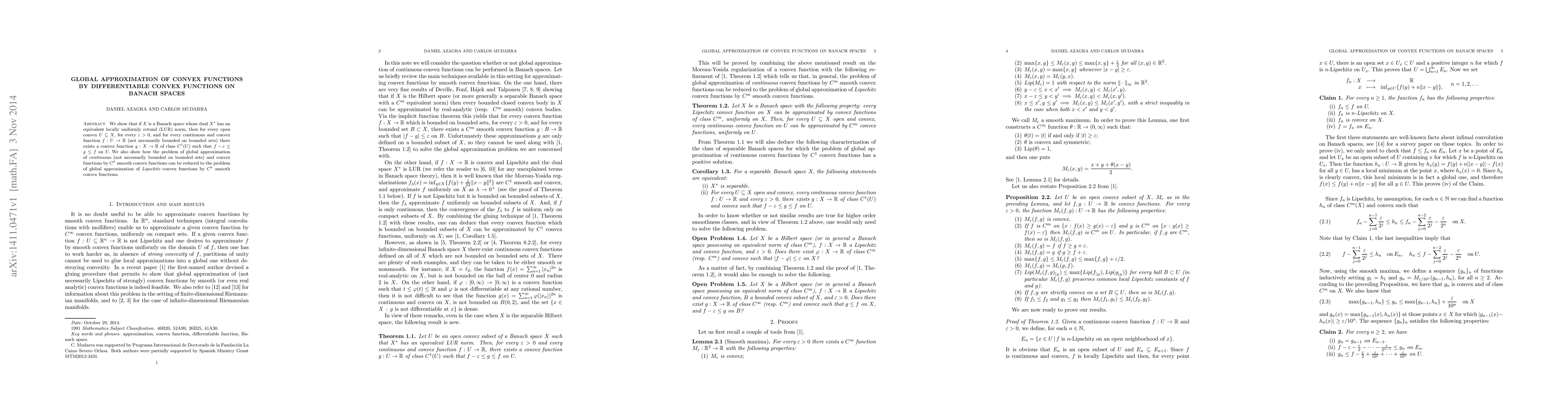 This paper demonstrates that continuous convex functions on open subsets of Banach spaces can be globally approximated by differentiable convex functions when the dual space has a locally uniformly rotund norm. It also reduces the approximation problem for general convex functions to that of Lipschitz convex functions.