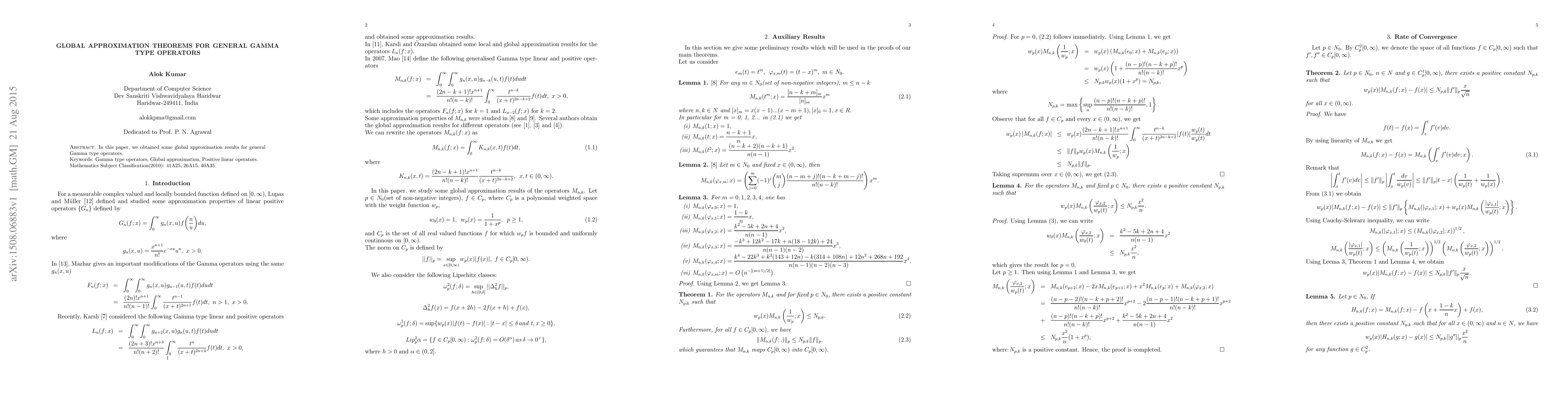 In this paper, we obtained some global approximation results for general Gamma type operators.