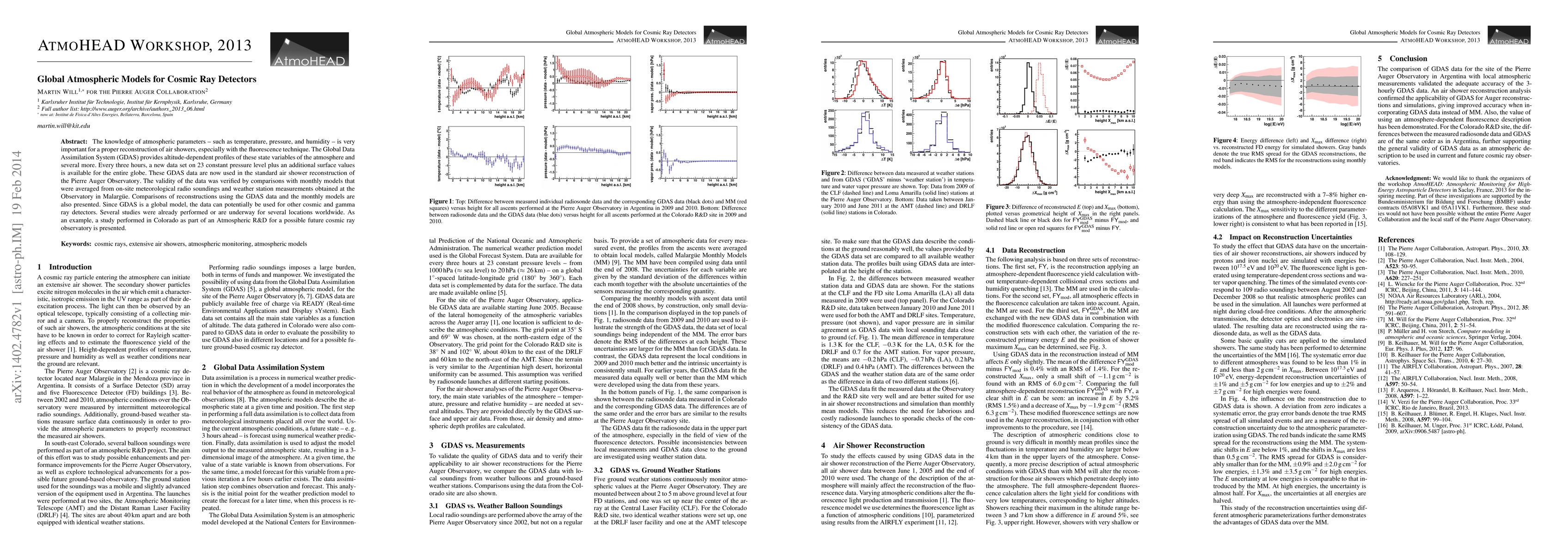 Global Atmospheric Models provide accurate air shower reconstruction for cosmic ray detectors, with global data available every three hours. This research verifies the validity of these models through comparisons with local meteorological data.