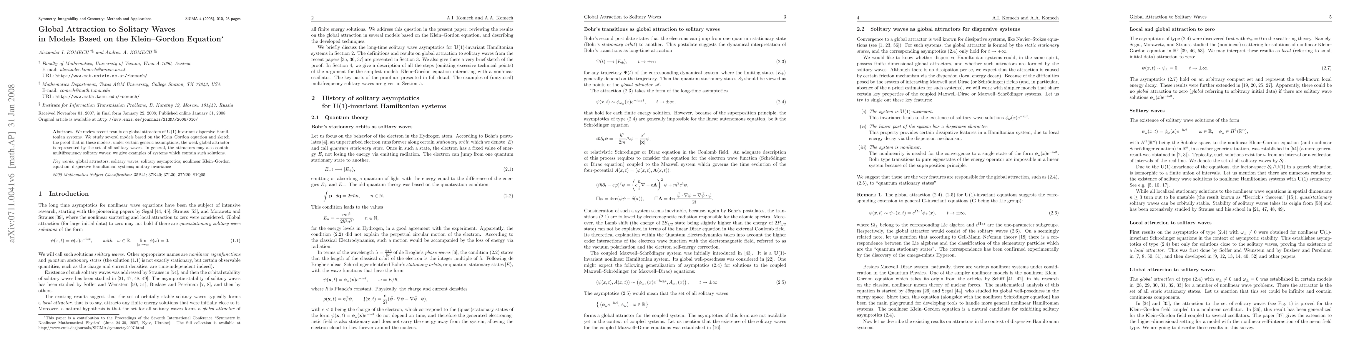 Research finds that in models based on the Klein-Gordon equation, solitary waves often serve as global attractors under certain conditions. This suggests a common feature of these systems.