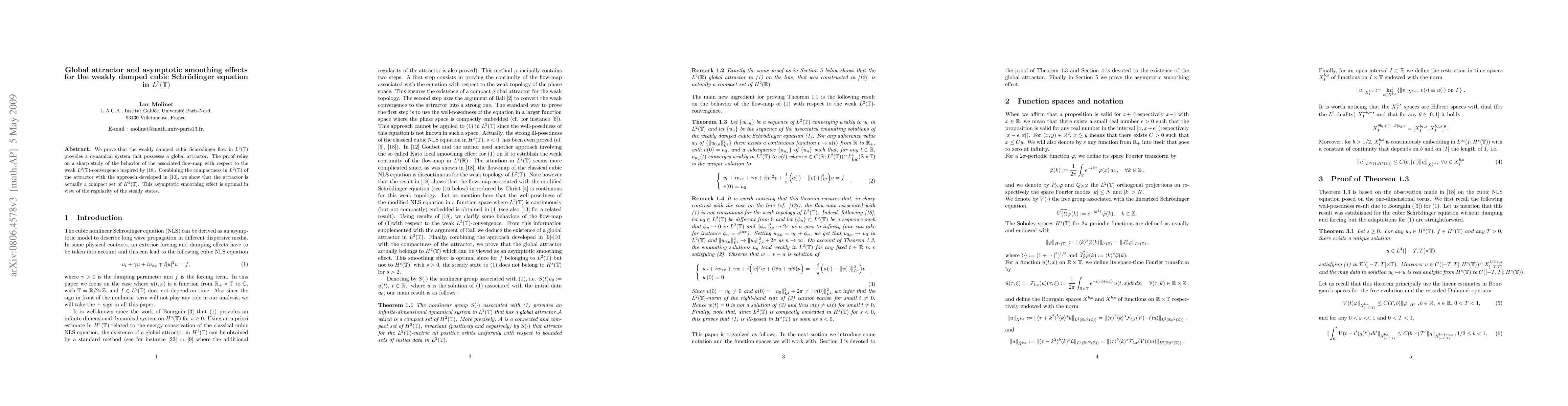 This paper proves the existence of a global attractor for the weakly damped cubic Schrödinger equation in $L^2(\T)$, demonstrating that the attractor is a compact set in $H^2(\T)$ and exhibiting an optimal asymptotic smoothing effect. The proof leverages the behavior of the flow-map and combines compactness arguments with methods developed by Goubet.