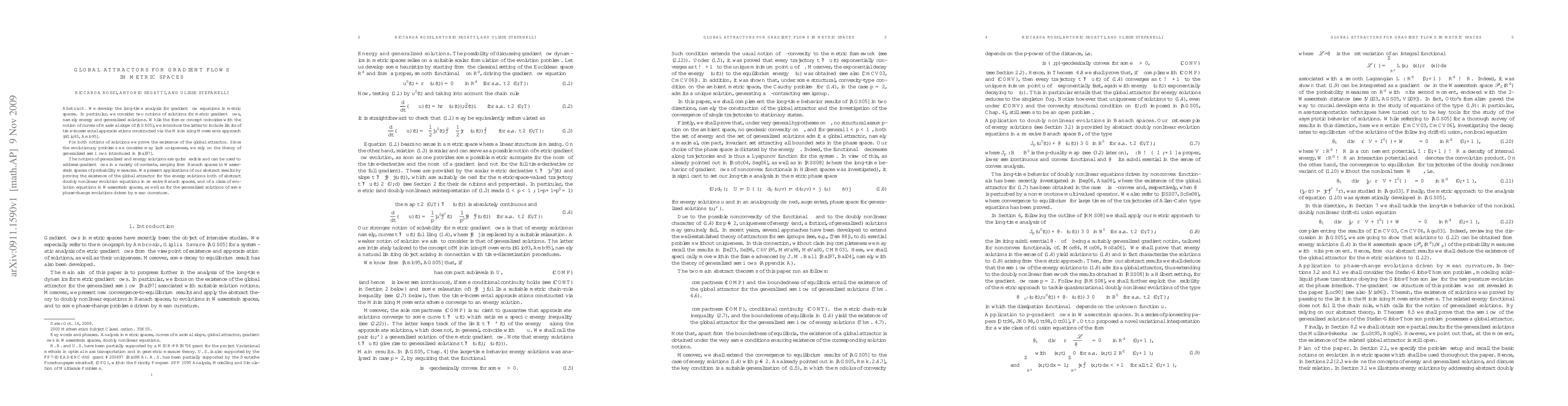This paper develops long-time analysis for gradient flow equations in metric spaces, proving the existence of global attractors for both energy and generalized solutions. It applies the theory of generalized semiflows to address gradient flows in various contexts, including Banach and Wasserstein spaces.