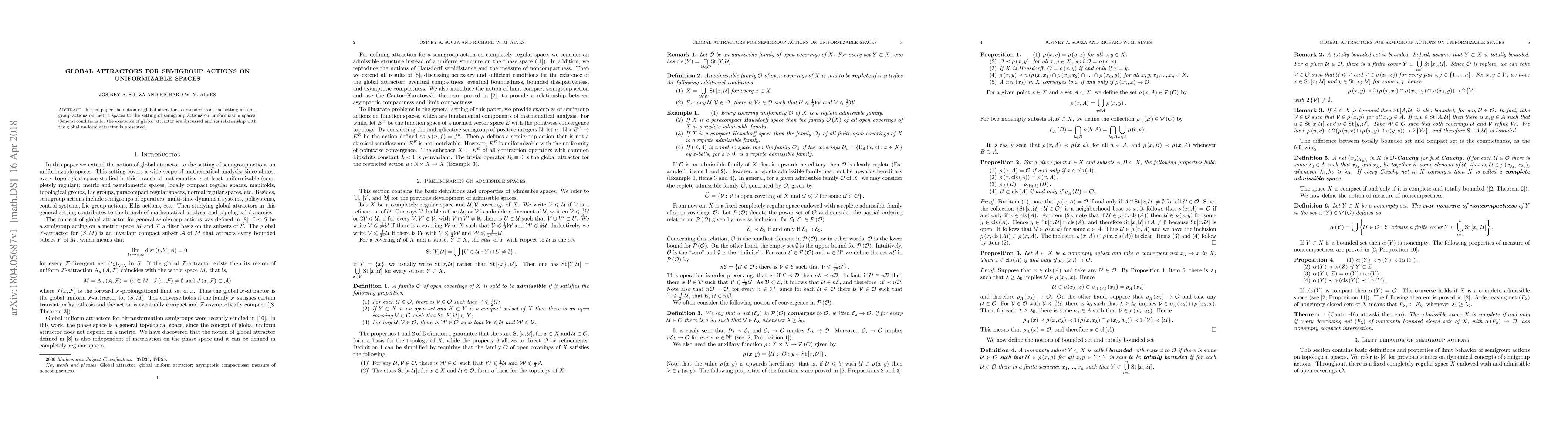 This paper extends the concept of global attractors from metric spaces to uniformizable spaces under semigroup actions, discussing general conditions for their existence and their relationship with global uniform attractors.