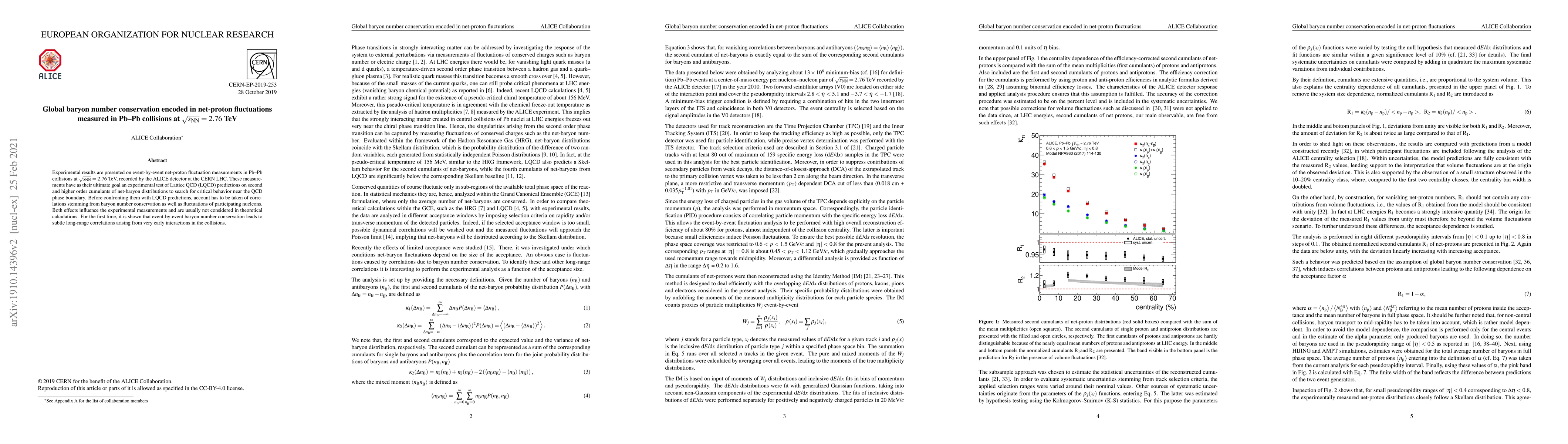 Experimental results are presented on event-by-event net-proton fluctuation measurements in Pb-Pb collisions at $\sqrt{s_{\rm NN}}$ = 2.76 TeV, recorded by the ALICE detector at the CERN LHC. These measurements have as their ultimate goal an experimental test of Lattice QCD (LQCD) predictions on second and higher order cumulants of net-baryon distributions to search for critical behavior near the QCD phase boundary. Before confronting them with LQCD predictions, account has to be taken of correlations stemming from baryon number conservation as well as fluctuations of participating nucleons. Both effects influence the experimental measurements and are usually not considered in theoretical calculations. For the first time, it is shown that event-by-event baryon number conservation leads to subtle long-range correlations arising from very early interactions in the collisions.