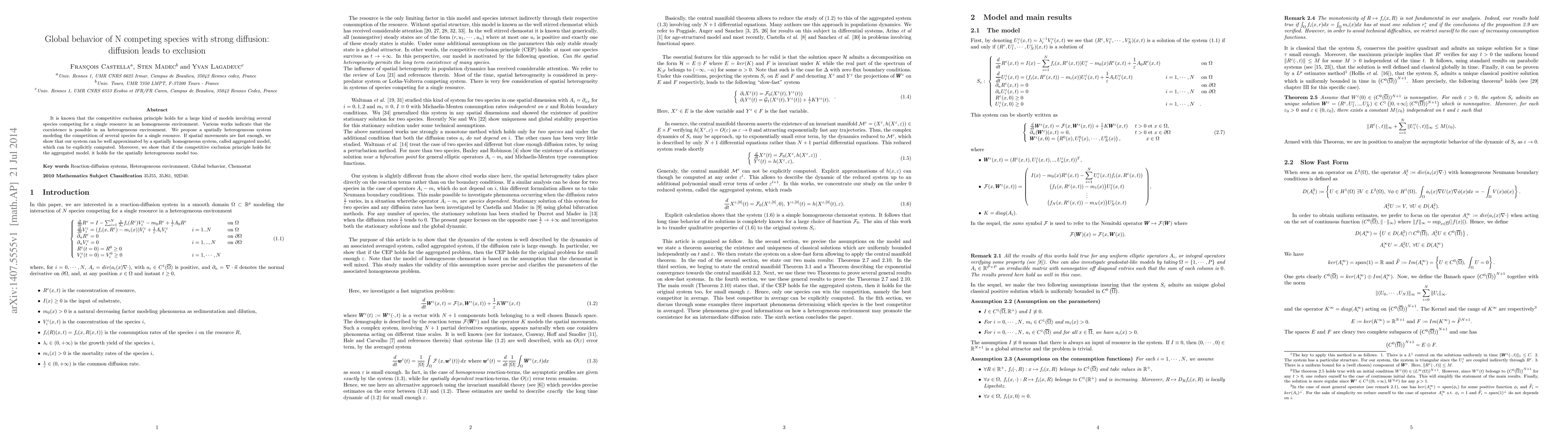 Research shows that competitive exclusion in species competition models can occur even in heterogeneous environments if spatial movements are fast enough. This leads to the possibility of coexistence in such systems.