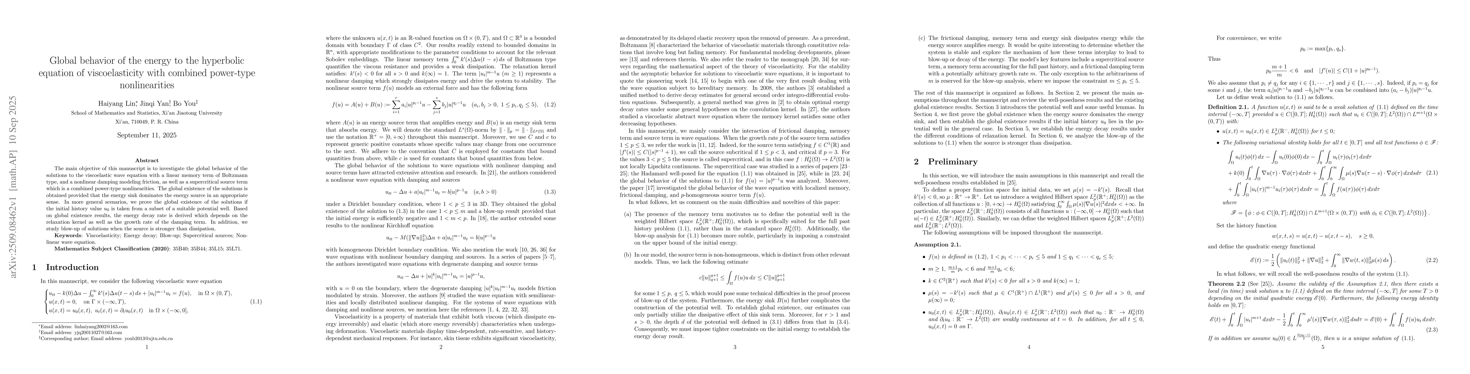 The main objective of this manuscript is to investigate the global behavior of the solutions to the viscoelastic wave equation with a linear memory term of Boltzmann type, and a nonlinear damping modeling friction, as well as a supercritical source term which is a combined power-type nonlinearities. The global existence of the solutions is obtained provided that the energy sink dominates the energy source in an appropriate sense. In more general scenarios, we prove the global existence of the solutions if the initial history value $u_0$ is taken from a subset of a suitable potential well. Based on global existence results, the energy decay rate is derived which depends on the relaxation kernel as well as the growth rate of the damping term. In addition, we study blow-up of solutions when the source is stronger than dissipation.